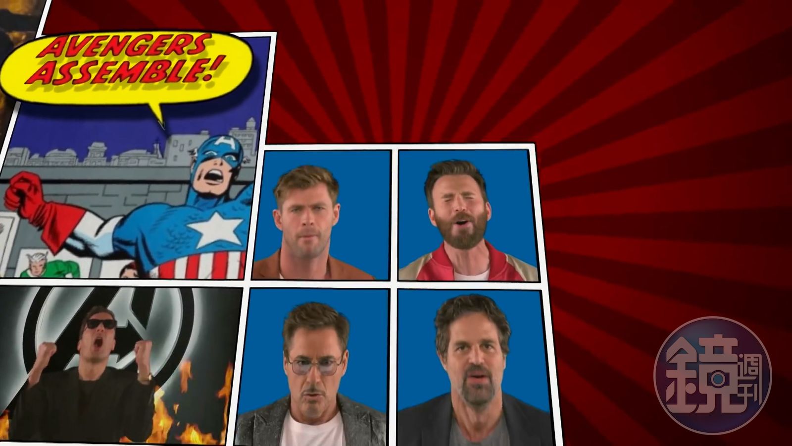 《復仇者聯盟:終局之戰》24日一早上映便造成洗板熱潮。(迪士尼提供)這支MV集合了「鋼鐵人」小勞勃道尼、「美國隊長」克里斯伊凡、「雷神索爾」克里斯漢斯沃、「驚奇隊長」布麗拉森、「戰爭機器」唐奇鐸、「鷹眼」傑瑞米雷納、「浩克」馬克魯法洛、「蟻人」保羅路德、「奧歌耶」戴娜葛里拉及「涅布拉」凱倫吉蘭等英雄,歌詞除了提及漫威從「鋼鐵人」開始的所有英雄角色外,也提及了各階段的重要大事。