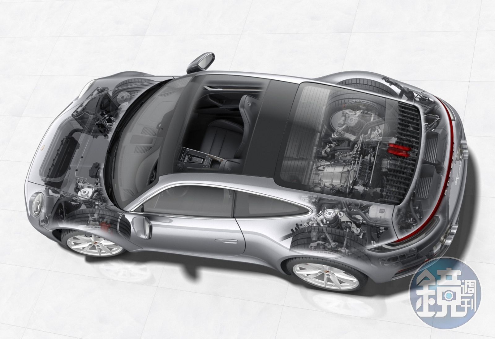 全新 911 車體的多重材質代表輕量設計的一大進步,將前一世代所開創的輕量化工藝帶至更高層次。同時,新世代車體概念也提升了整體剛性;相較於前一世代,911 Coupé 擁有更優異的扭轉剛性及抗彎能力,使得 911 在動態駕馭中,強度絲毫不受路面變化影響。