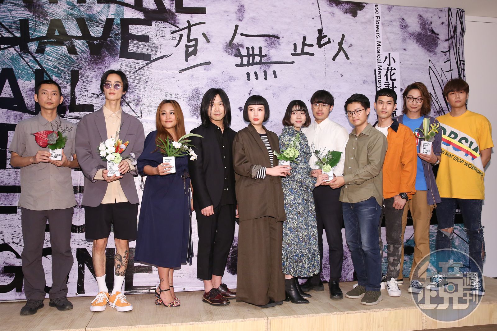 記者會上,參與「查無此人-小花計畫展」的音樂人及藝術創作團隊,包括家家+曲倩雯、宇宙人+紀昀、告五人+吳仲倫、魏如萱+豪華朗機工、李英宏+新興糊紙文化+齊振涵+李嘉泉、Point許志遠+黃邦銓、蔡孟閶、王宗欣、蘇益良等人皆到場,除了分享這次展覽的創作主題,也透露最不想消失的人事物和合作趣事。如此難得一見的華麗陣容,也讓記者會主持人黃子佼在臉書上大讚「近期最佩服、近日最期待!」