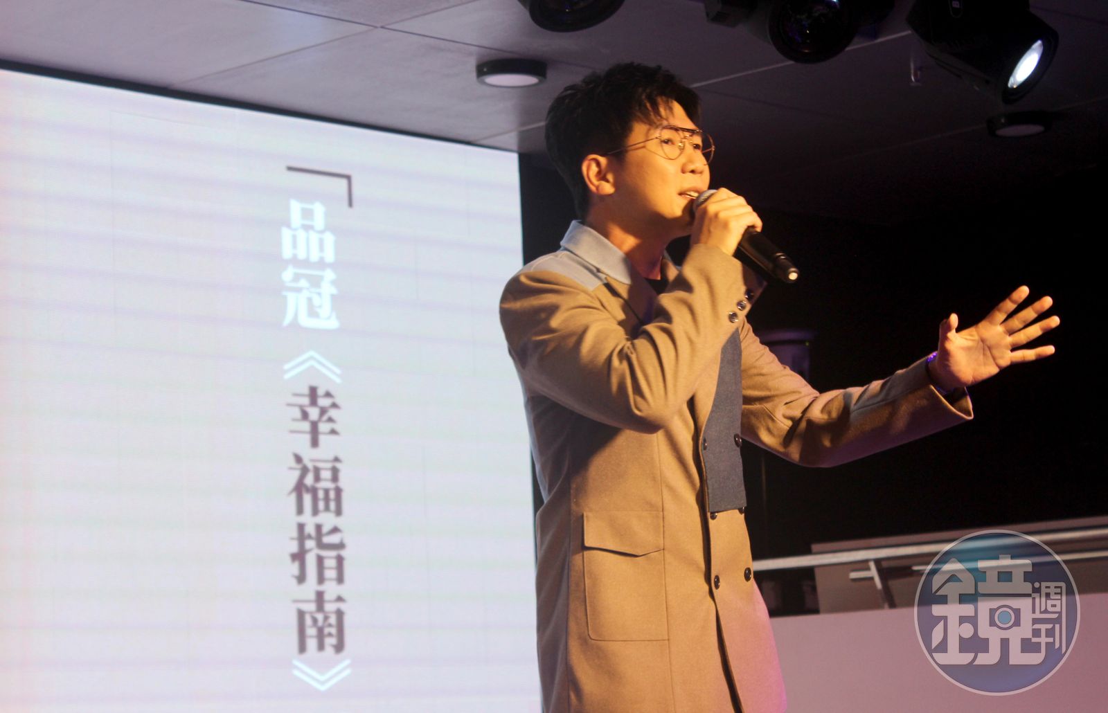 除了人暖外,品冠的音樂、嗓音也是帶給大家無限溫暖,這次在專輯和演唱會記者會上,唱片公司以「幸福指南創刊展」作為概念出發,精心設計「幸福指南」巨型迷宮裝飾藝術展覽,透過「當幸福來敲門」「幸福b-side」「幸福自訂」等幸福三部曲,不但可以快速了解新專輯每一首歌的精神核心,也讓在場的人從互動中,近距離去感受品冠音樂的初衷和溫暖,他自己逛了一圈之後也有感而發地說:「不要定義別人的幸福,很多時候幸不幸福冷暖自知。」