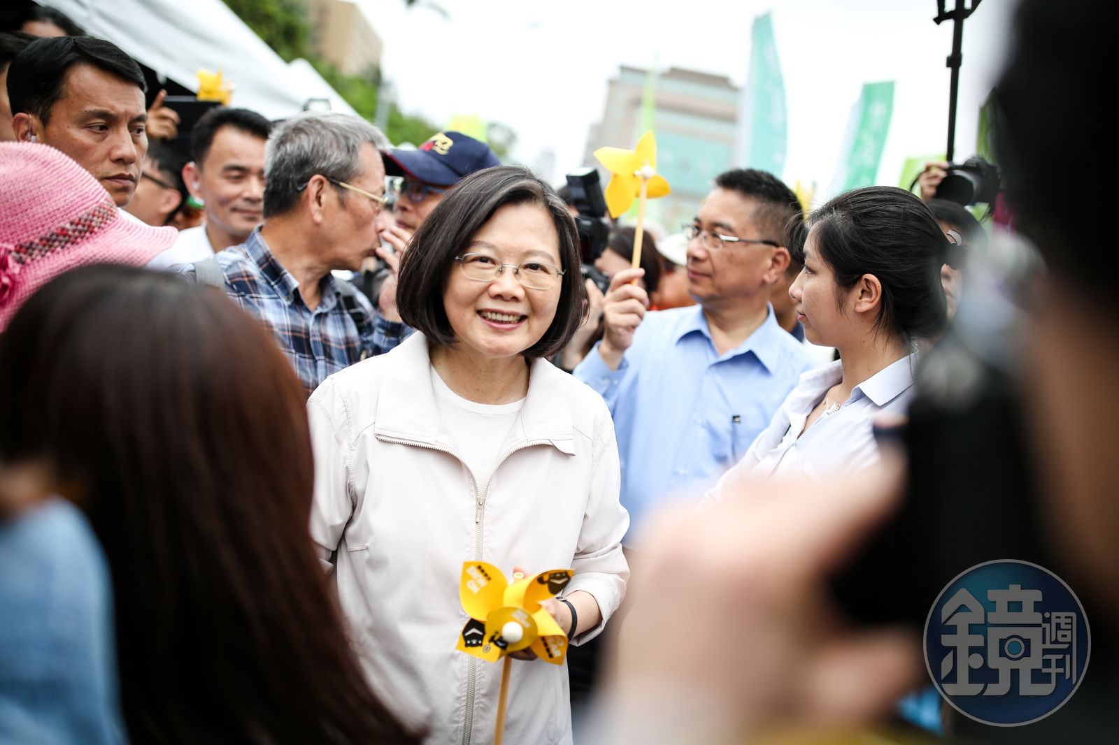 下午2點09分,蔡英文車隊抵達凱道,從凱道靠近景福門處下車步行進入遊行隊伍,還特地到民進黨大隊和黨主席卓榮泰、祕書長羅文嘉等人加油打氣,隨即在維安人員簇擁下前往台北賓館大門口發表談話。