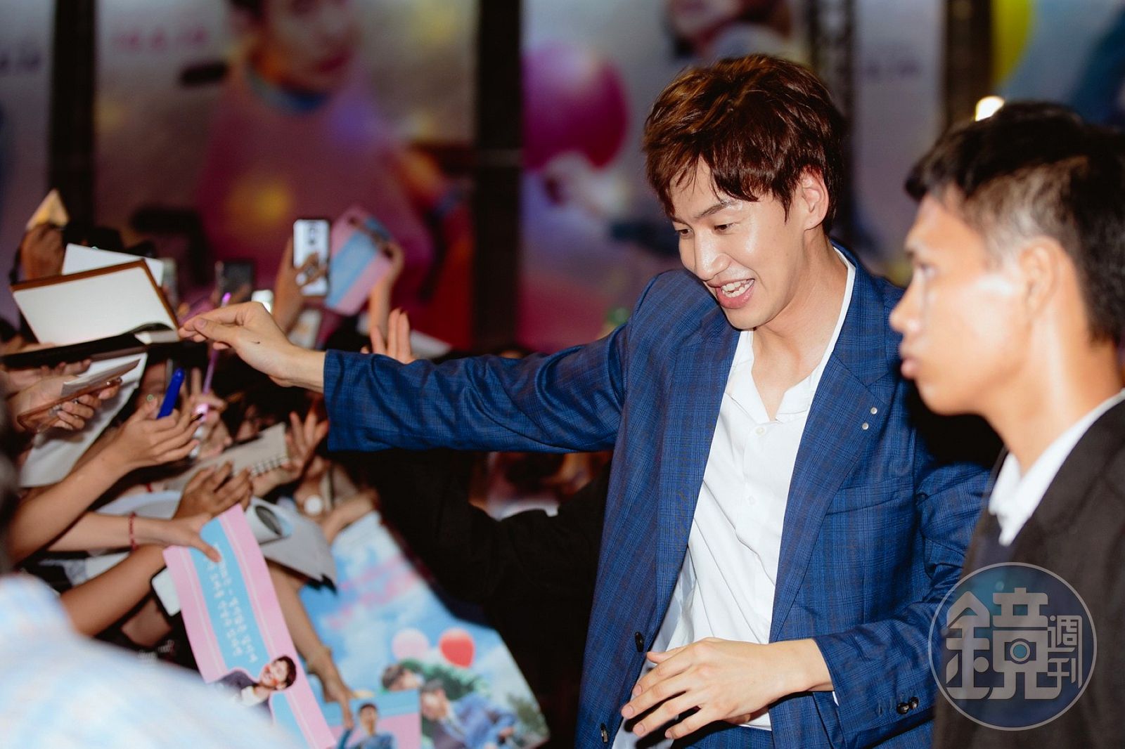 一洗在《Running Man》的「臭手」、「被欺負」的窩囊,以「亞洲王子」形象出現的李光洙,身著簡單而優雅的深藍色西裝,在戶外紅毯活動的上千粉絲前,他不但放慢腳步與粉絲一一握手、簽名、合照展現親和力,更不斷放送「手部愛心」讓粉絲尖叫不已。