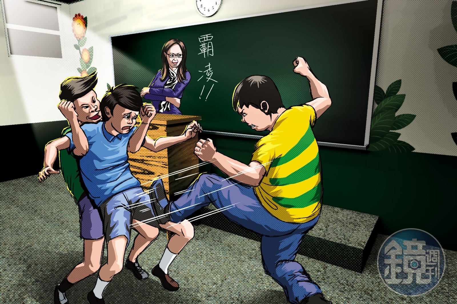更嚴重的霸凌發生在去年9月14日,阿銘和另名同學手捧音樂課本、鉛筆盒走回教室,突遭吳姓同學從背後搶奪鉛筆盒,雙方發生激烈拉扯,吳生還將鉛筆盒拋擲給另一名蕭姓同學,蕭生接過後也刻意不還。阿銘試圖拿回自己的物品,卻遭吳生從背後架住,用力拉扯手臂、衣服,並聯合蕭生出手毆打。