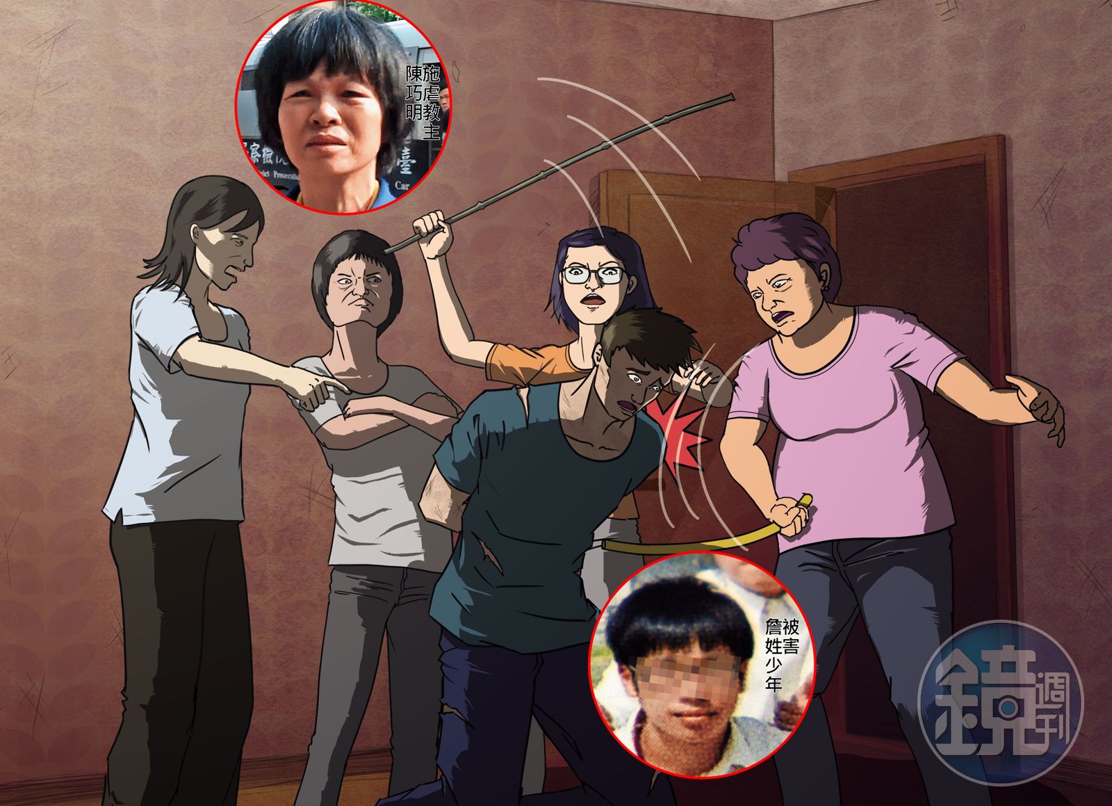 陳巧明與信徒以水管、細竹子鞭打詹姓少年,並綑綁其雙手雙腳,囚禁在不到5坪的小房間裡整整18天。少年曾跪地哭求媽媽救他,但詹母竟然還是盲目相信陳巧明的管教方式,甚至愛子慘死,仍一心袒護教主。辦案人員說,不孝子見多了,但當母親的狠心至此,實在罕見!