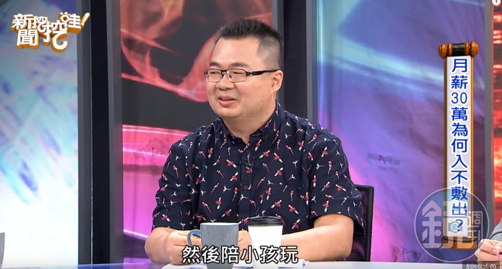 楊宗燁說,前妻研究所畢業後就沒上過班,交往時她自稱很簡樸,第一個LV包是她自己辛苦存錢買的,婚前也跟他說生活費只拿2、3萬就好,但婚後她就聯合她媽媽對她說2、3萬元哪夠用,生活費就盧到她覺得滿意。甚至他連打嗝放屁都要付1000元罰金,因為妻子認為這樣會教壞小孩,但她自己做同樣的事就說「反正你一定有欠我,從你那邊抵掉」,他也因為這樣被罰了5、6000元。