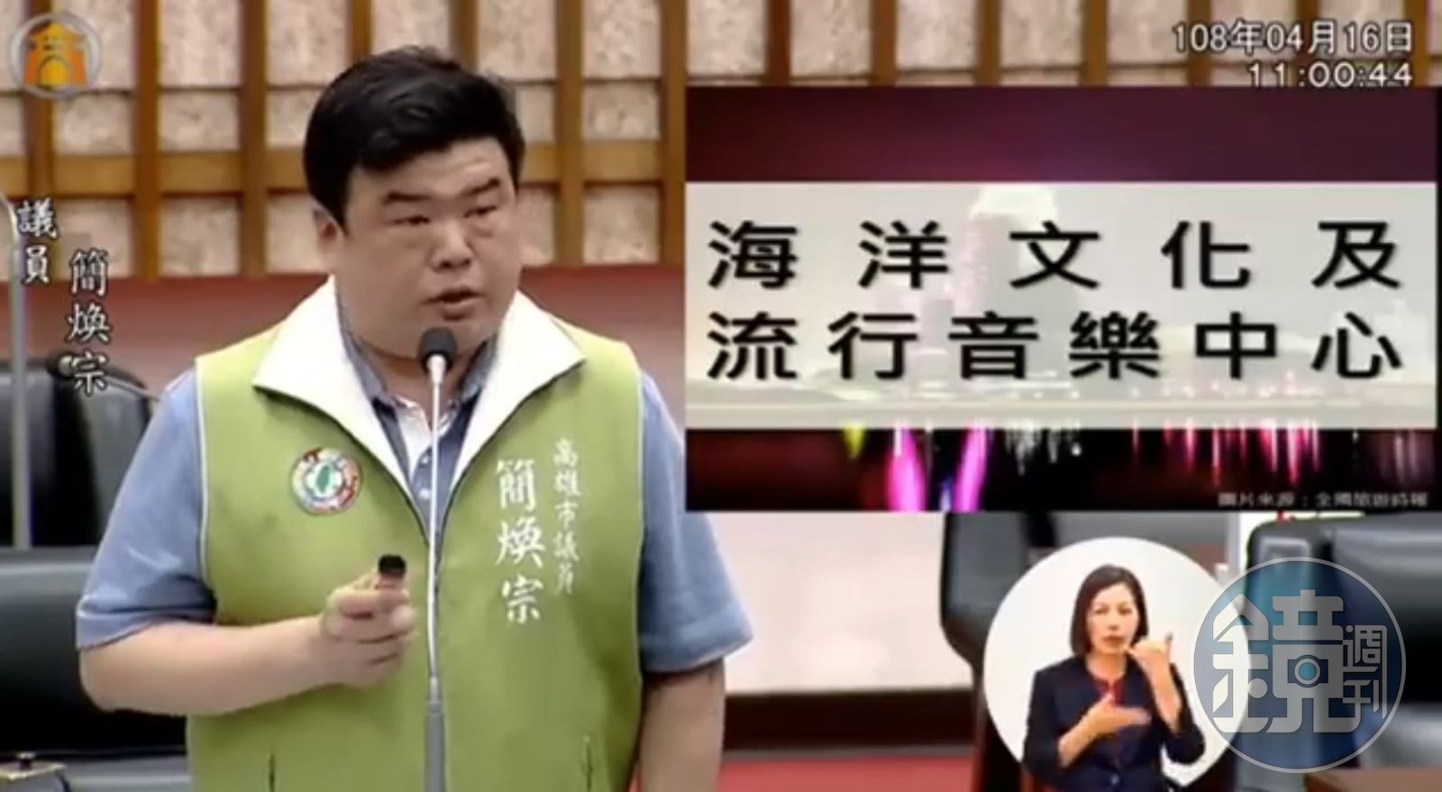 簡煥宗指出,4月15日那一天是基進黨發言人陳柏惟在臉書上說「他上了高雄市議會的質詢」,自嘲是幕後的黑手,引來網友的留言,自己也跟去湊熱鬧留言。因為有網友就說「影片呢?」於是他把側錄的影片PO到陳柏惟的臉書上面,整件事情就是這樣。