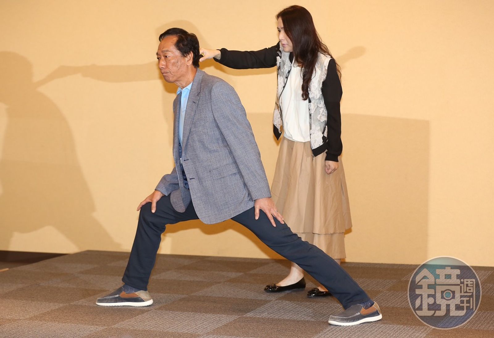 郭台銘以中國為例,指出對岸的經濟腿跨出去撐了30年,已經到達極限,若不把政治的腿往前跟進,便無法達到平衡,因此必須做出政治改革,國家才會站得穩。