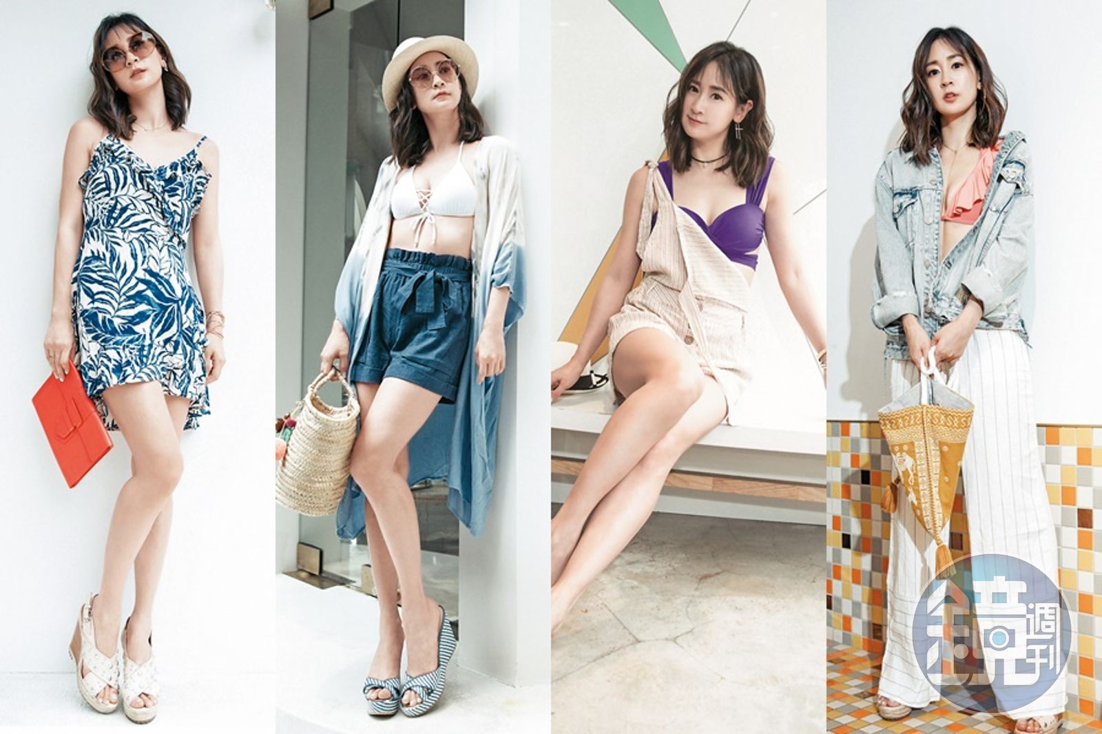 我自己有很多泳裝耶!因為比基尼上半身可以當Top穿,我經常是這樣的look到處趴趴走,重點在於要選細節比較特別、顏色亮一點的,當內搭就會讓整體很跳;我的Choker項鍊會跟女兒共用,它有一點小太妹的感覺,讓我可以mix & match。