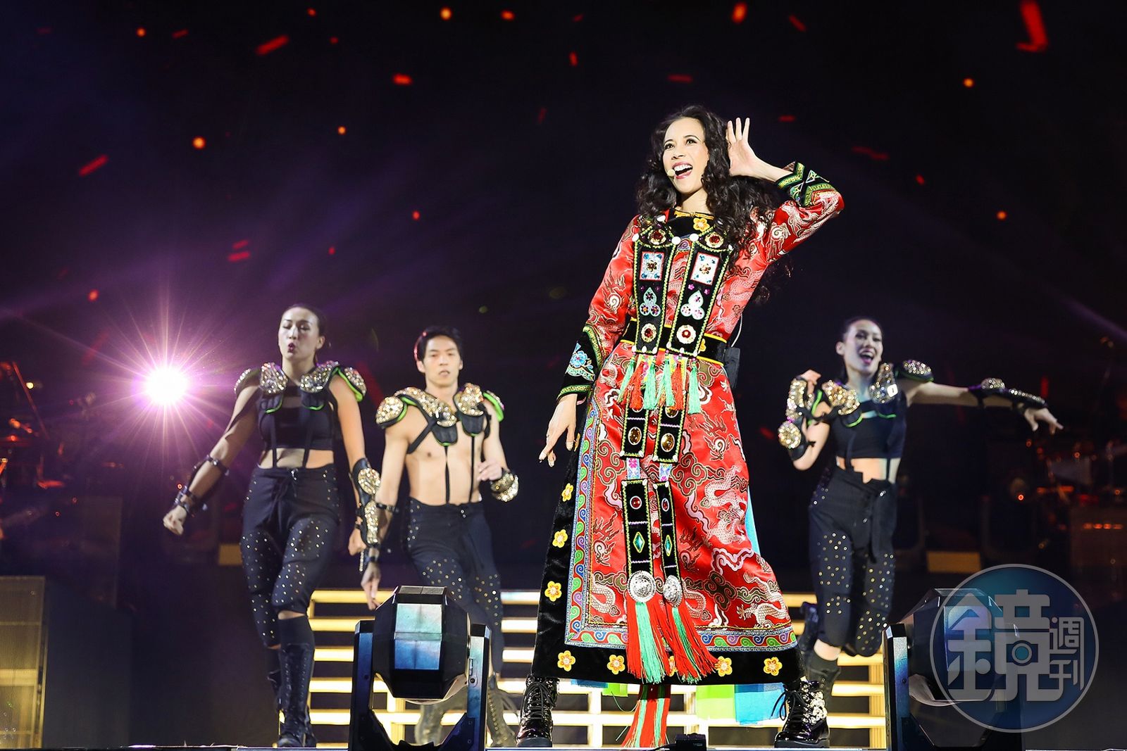 演唱會進行到後半段,也開啟了屬於蘭州的驚喜時刻,先是莫文蔚在古箏solo中彈奏了《黃河協奏曲》最具代表性的一段旋律,隨後她又身穿甘肅省少數民族裕固族的傳統服飾,登台擊鼓並演唱。到了安可段落更是出人意料,樂隊與舞團竟然在台上現場拉起了拉麵,並且用拉長的麵來進行跳繩比賽!一招接一招,連環引爆的驚喜令台下歌迷興奮不已,看到了一場誠意滿滿的「甘肅特別版」絕色演唱會。