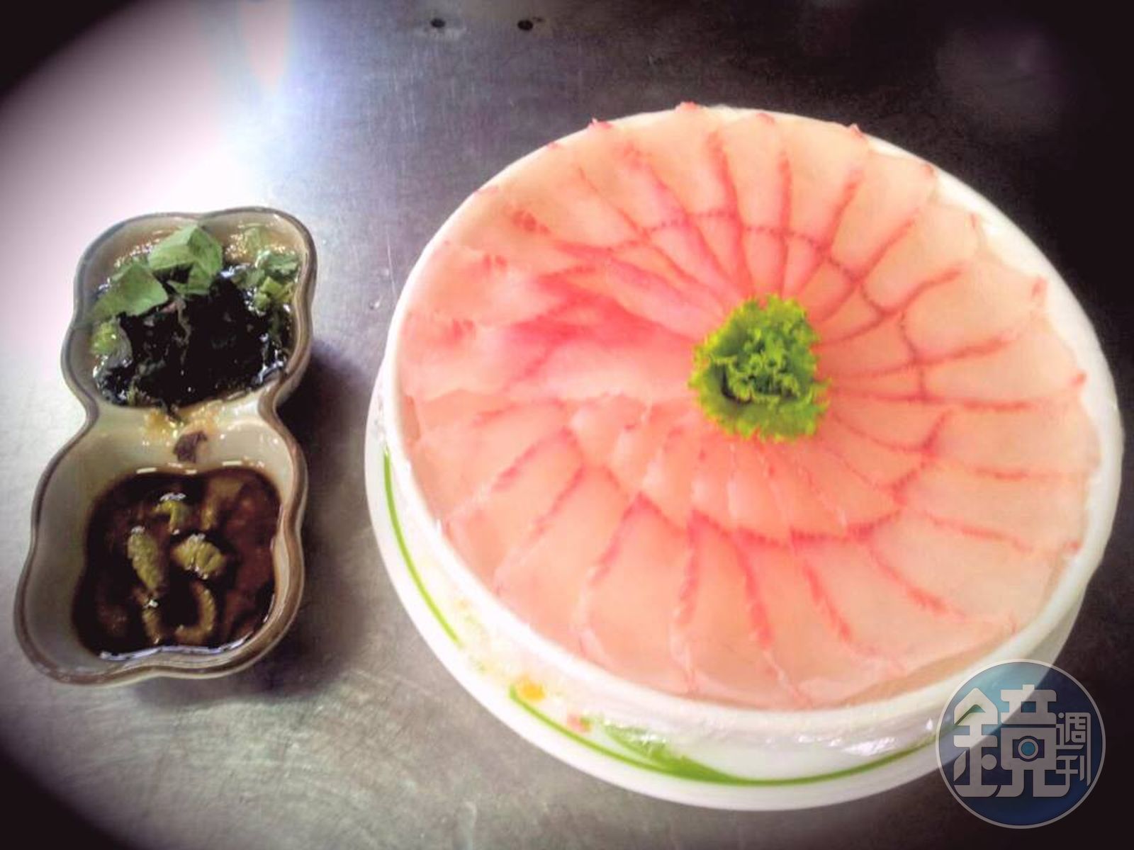 早期店家選用明德水庫的箱網養殖吳郭魚做生魚片,一個晚上可以賣20條魚,無奈養殖端價格不優,越來越多人改行,老闆張寬鴻嘗試過多種魚種,最後發現鱺魚肉質有彈性,很適合做生魚片,一做就熱賣36年,幾乎每桌客人都必點。