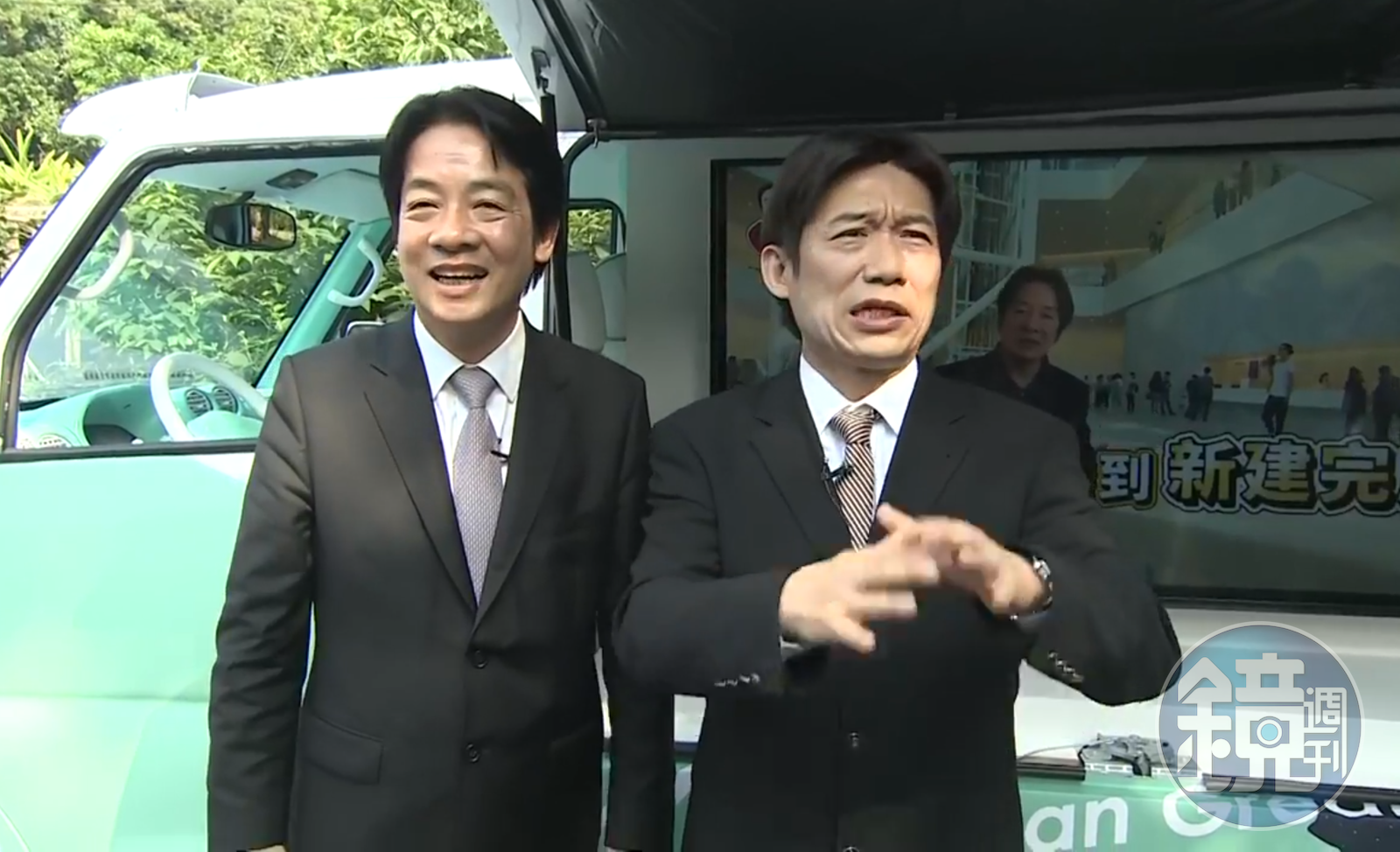 2人見面時,賴清德對郭子乾說:「青德兄你好,你青德,我也清德。」郭子乾笑回:「我的青沒有三點水,你比我清。」賴還不忘吐槽郭手上拿的平版宣傳照比較像他而不像郭。