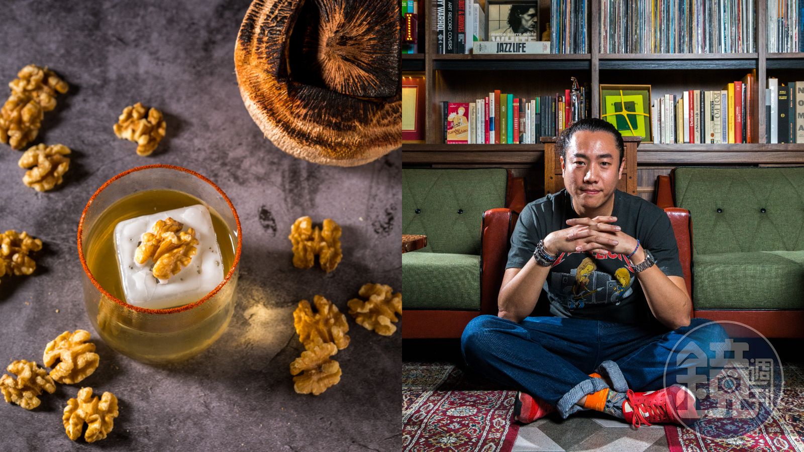 當攝影師準備拍攝這杯酒的時候,阿凱拿來核桃,刻意將突起的一面朝向鏡頭,核桃的樣子像極了大腦,配上他說的:「有時候就是要把腦子翻過來用。」這註解,下得極好。