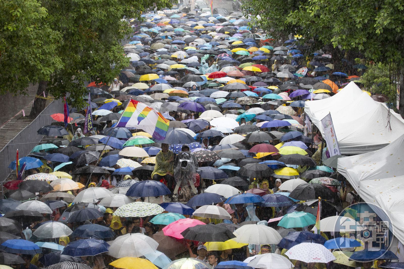 蔡英文重申,四年前說過支持婚姻平權,經過這些年的共同努力,「我們做到了,這就是我們的台灣」,民主、自由、平等,在台灣的2千300萬人,每一個人都一樣,我們都一樣。