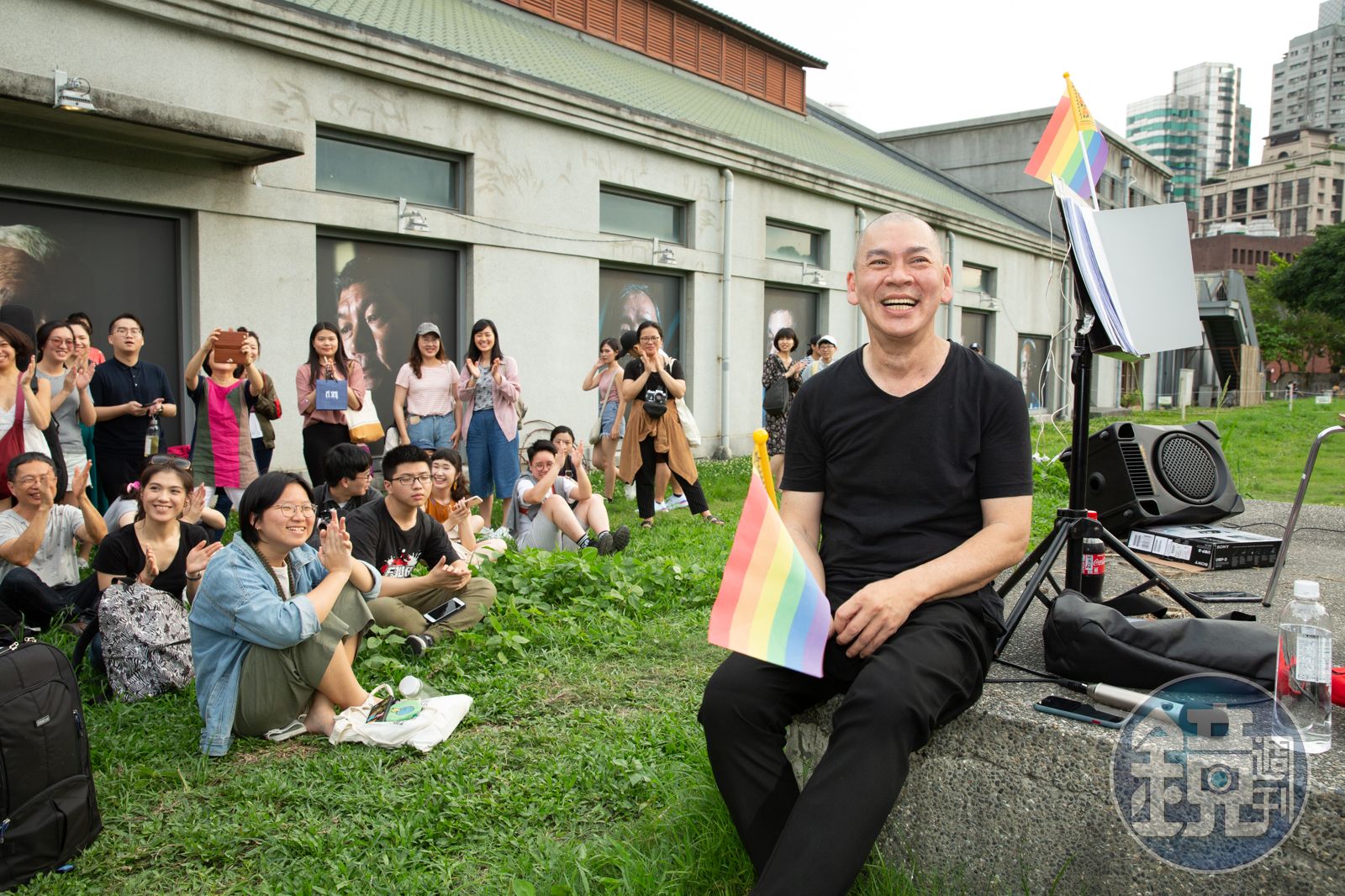 談到同婚專案通過,蔡明亮導演說他非常開心,尤其當天在青島東路看到致力於同志運動的祁家威,依然站在高處搖著彩虹旗,蔡導說:「台灣人是可愛的,40年前他就站在那裡,也沒有人拿石頭砸他或是趕他,真的太偉大了。」