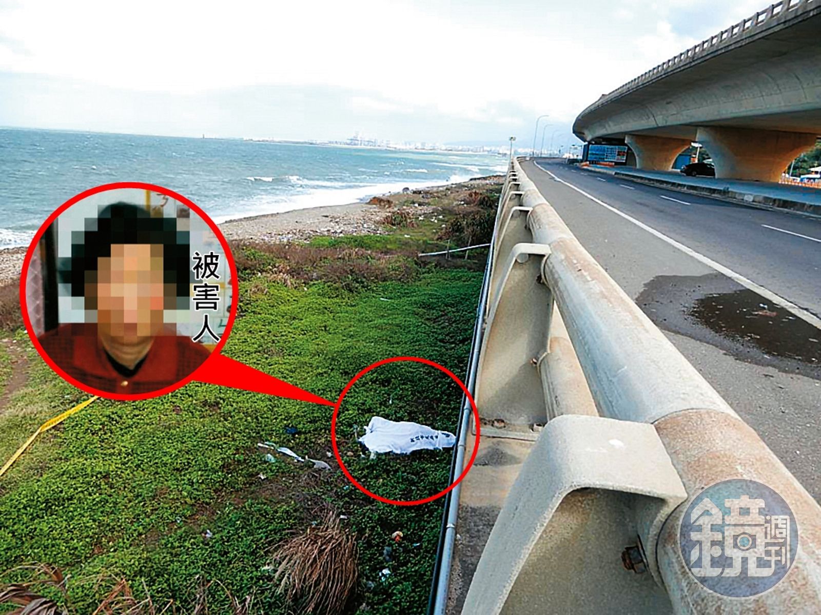 郭姓老婦遭殺害後,屍體被棉被包裹丟棄在西濱快速道路15.5公里處下方。發布時間:2019.05.21 06:58 臺北時間
