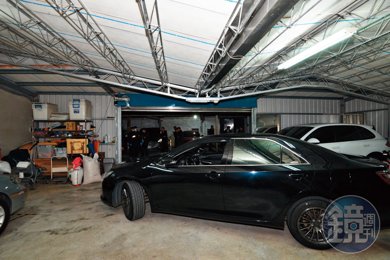 警方對棄屍車輛進行採證時,車庫燈光一度暗了十秒鐘。(警方提供)發布時間:2019.05.21 06:58 臺北時間
