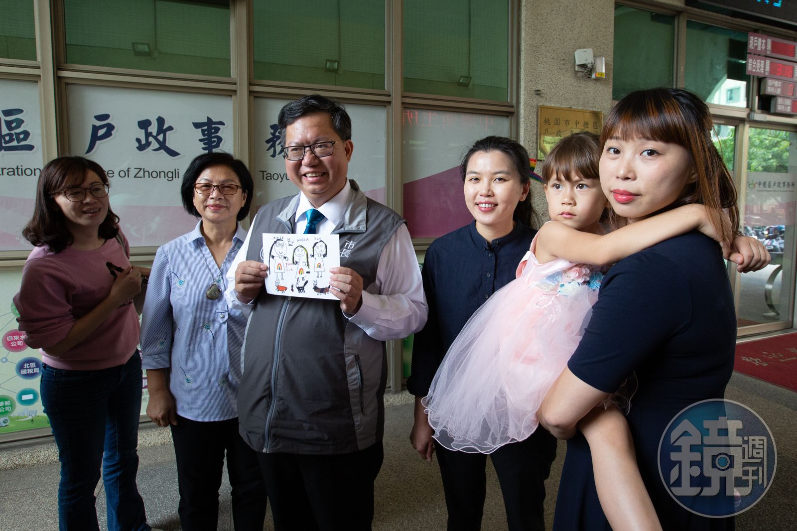 5月24日全台灣各地戶政事務所開放同志結婚登記,桃園市長鄭文燦中午特別到中壢戶政事務所,祝賀先前寫信到市府的同婚家庭,同時也在這對新人的結婚書約上簽下名字,成為全台第一位當同性結婚登記證人的市長。
