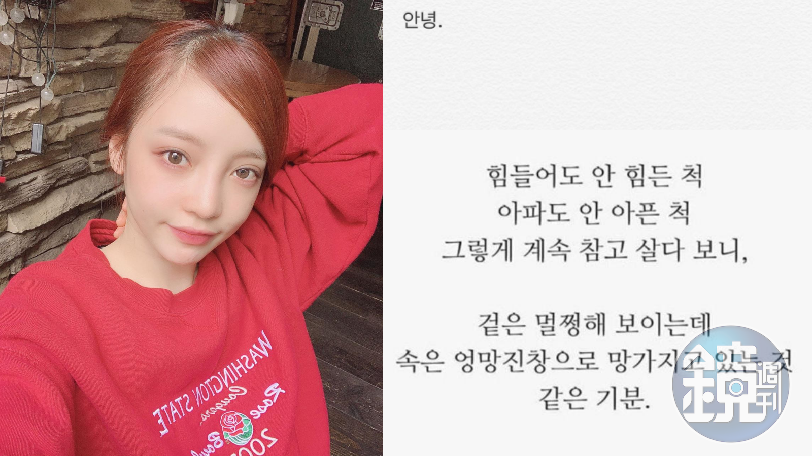 面對網路惡評,具荷拉曾解釋:「從很小開始活動,經歷了無數惡評,心裡真的很受傷很痛苦。」她昨天的限時動態的短文是:「再也不相信那些裝作總是都在我身邊,裝作好人的行為了,因為我去找你的時候,你一直都不在我旁邊」、「很累也要裝作不累,很痛也要裝作不痛……外表看來完好無損,內心早已破碎不堪」等文字,讓粉絲看了非常擔心,沒想到具荷拉真的做出輕生舉動。