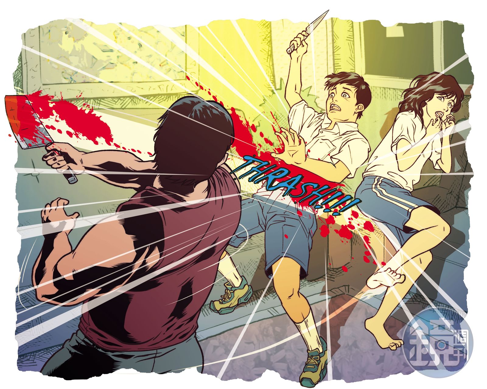 不確定小弟死了沒的朱建華,一不做二不休,跑到廚房拿菜刀,往小弟脖子橫切一刀,再朝喉結處刺入頸動脈,霎時鮮血噴得到處都是。