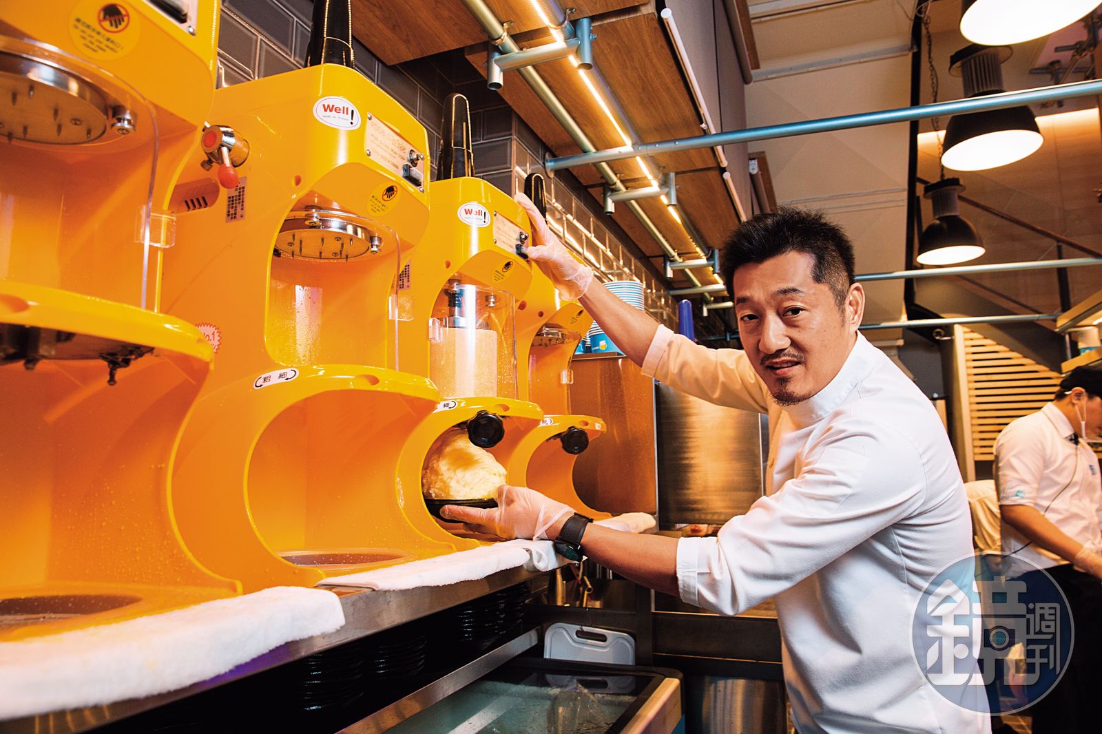 4月中旬,ICE MONSTER永康店開幕第一週,羅駿樺天天親自盯場,站在製冰吧檯神情專注嚴肅,餘光瞄到員工製作的芒果剉冰堆疊高度不夠紮實,他毫不留情地下命令:「這碗倒掉重做。」