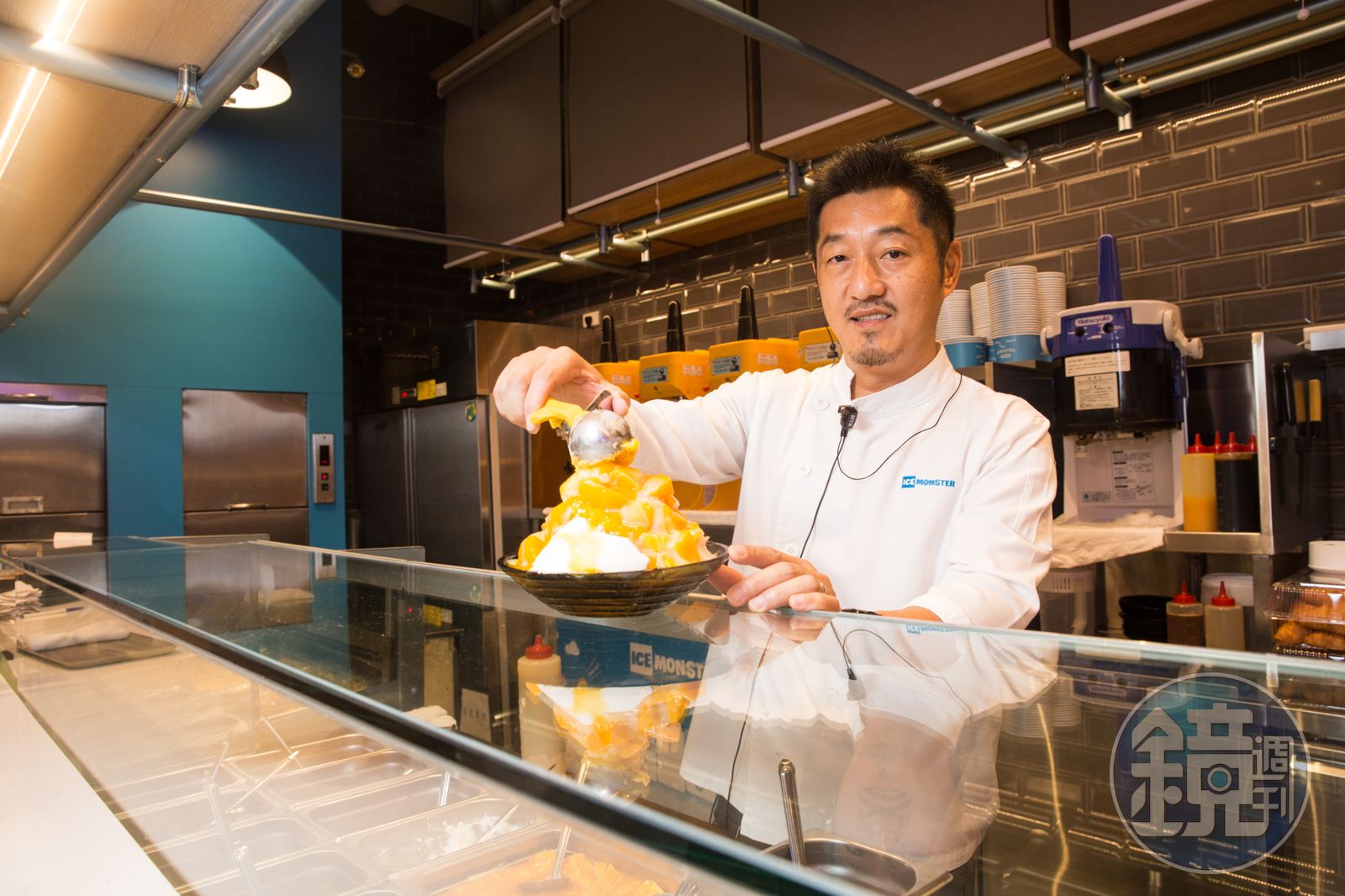「觀光客給你的回饋,會讓你有榮譽感,更注重提升品質。」他利用膠質含量較高的金煌、玉文品種萃取天然果膠,製作比傳統雪花冰更軟綿的「綿花甜」系列,包括宣傳店卡、餐巾紙匣,都以他的山羊鬍子造型為發想,設計Q版ICON,對許多國際觀光客來說,彷彿只要循此線索按圖索驥,就能嘗到正宗原創的芒果冰。