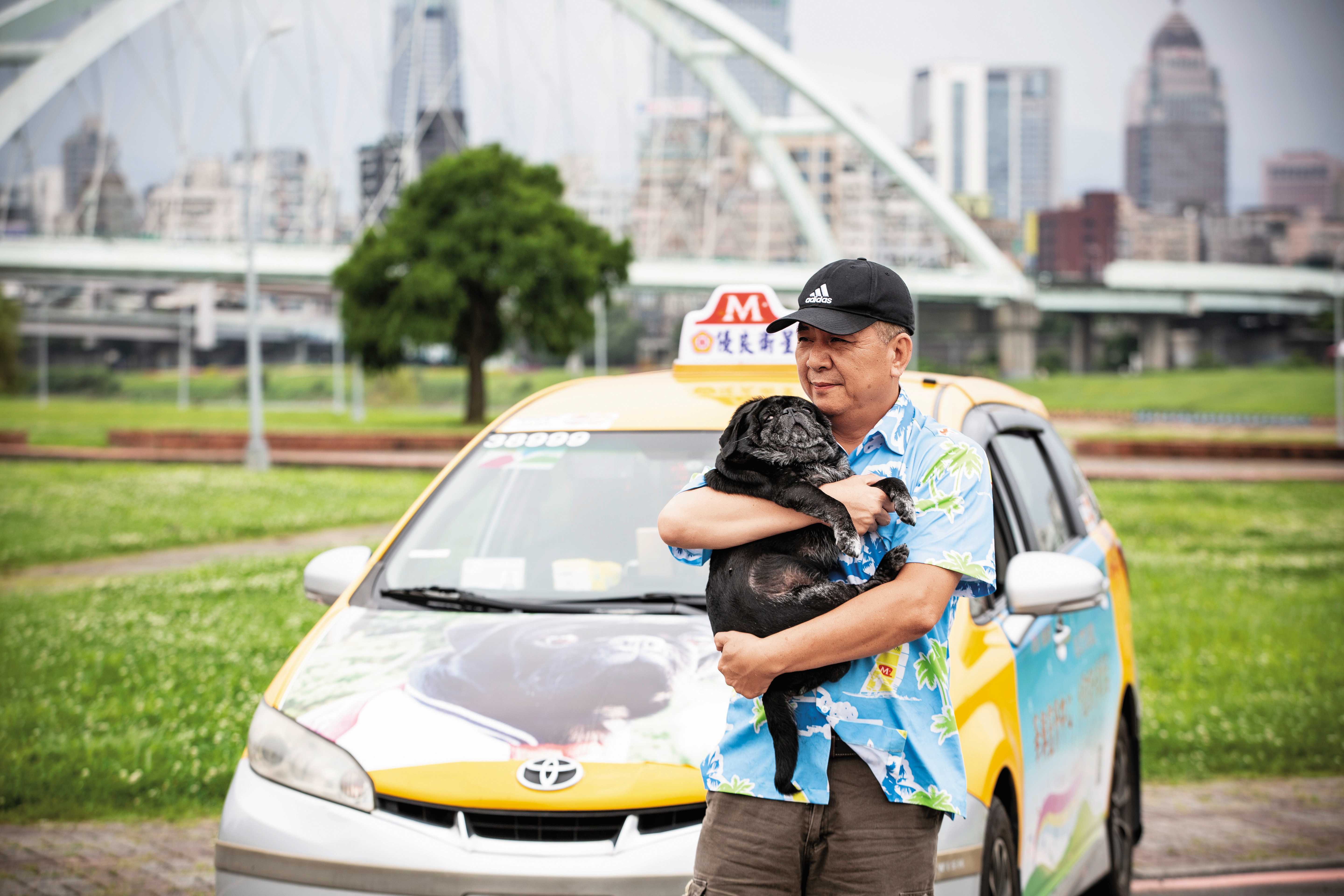 牠一歲前我等於父兼母職,每天隔1、2小時從餐廳衝回來餵奶什麼的,我看牠在家很可憐,想說要做什麼工作可以多陪牠,就來開計程車,這樣一開也8、9年了。我大多數都在台北內湖跑車,因為這裡公園多,牠要上廁所比較方便。別人餵牠東西牠不吃,我洗澡,牠坐在門口,我睡覺,牠睡在我肚子上,24小時不離不棄。