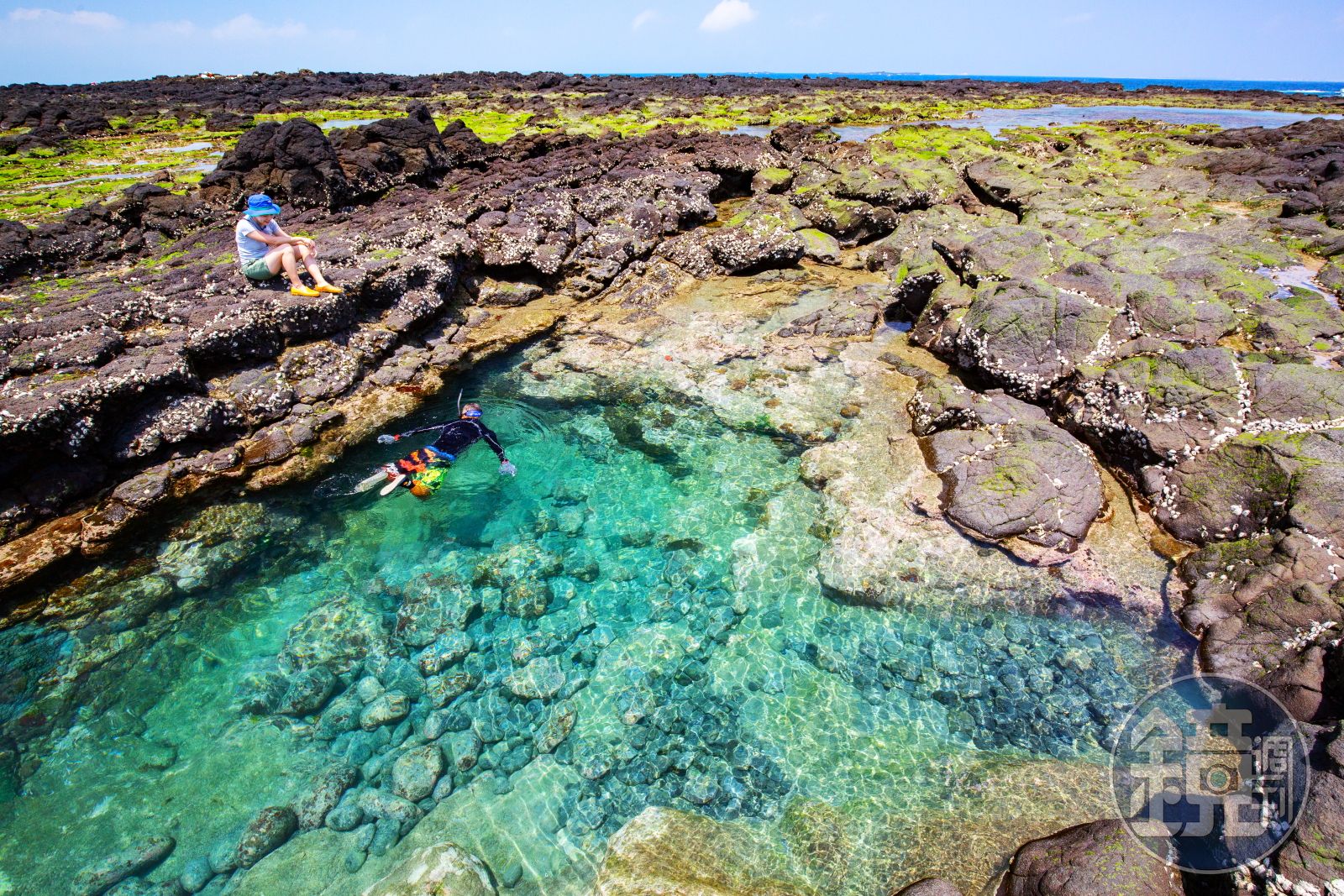 如今為了保護生態,加上龍蝦難尋,嚮導們必須事先將龍蝦藏在潮池裡,才能帶遊客們來此一邊認識毛司嶼的豐富生態,一邊感受捕獲龍蝦的興奮。在不同的潮池裡,可以發現硨磲貝、河豚、海參、小丑魚和海膽,悠悠哉哉地躺臥或悠遊在水池裡的模樣,嚮導笑說,整座小島就像一座天然的熱帶水族館,不需要下水,就能在陸地上看到各種熱帶魚群。