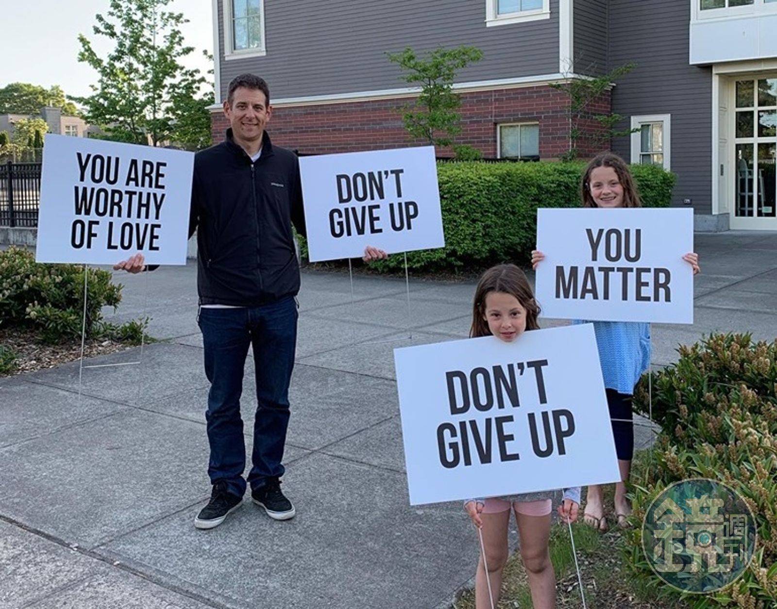 住在西雅圖、現年42歲的Colby Wallace坦言,身為家長聽到人們自殺的故事時,真的會感到很無力,尤其這些事情不斷發生,但人們卻不太願意談論。今年母親節當天,他帶著妻子和兩個分別為5歲、9歲的女兒到小學周邊設置立牌,上頭的標語簡而有力「不要放棄」「錯誤不會定義你」「你很重要」「你值得被愛」。