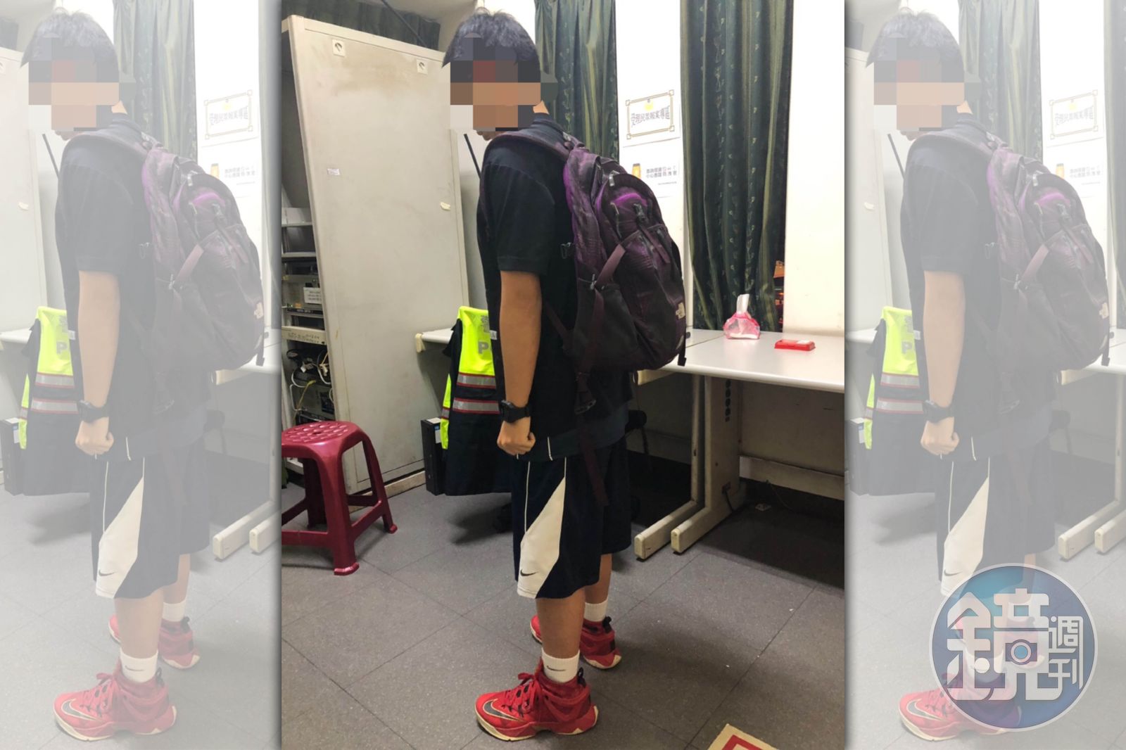 女子遭受驚嚇即刻大喊有色狼,並隨即衝到現場附近派出所報案,她向警方指稱犯嫌穿著藍上衣、長版運動短褲、紅色球鞋且揹運動背包,警方立即以無線電通知線上巡邏警網留意相關可疑人士,20分鐘後警方在一處路口發現蘇男,立即上前盤查並帶回警局。