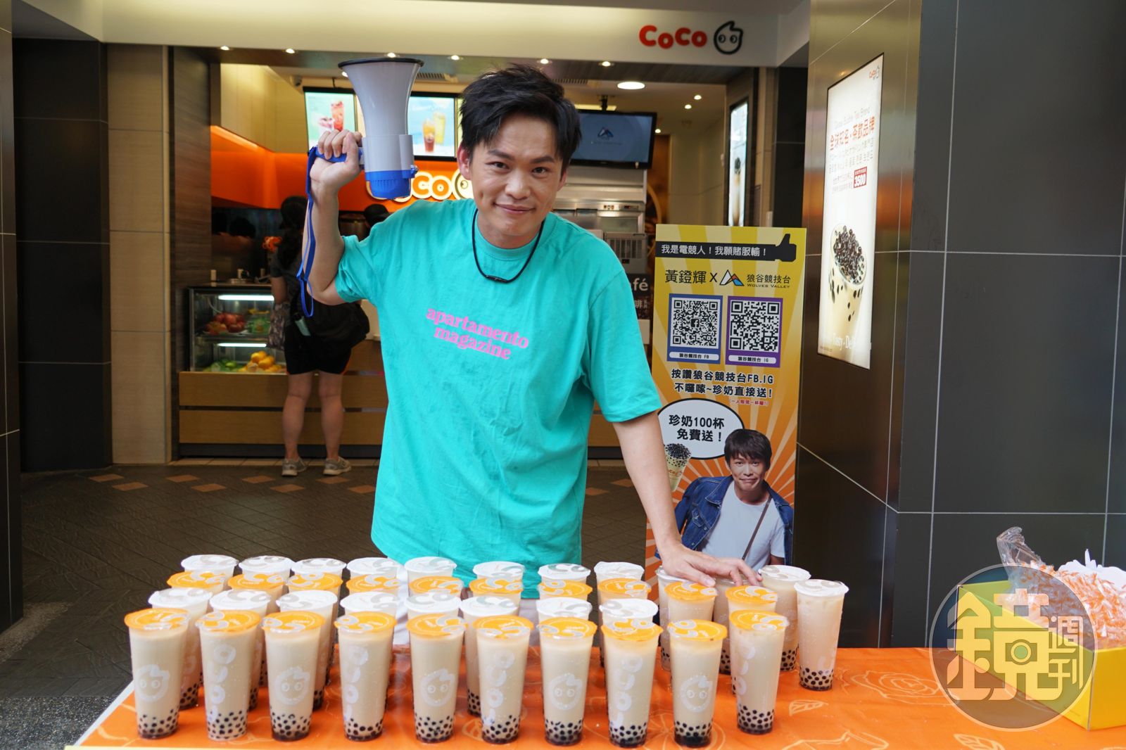 5月31日發珍奶當天,現場馬上湧入排隊人潮,黃鐙輝也大展親和力,拍照握手來者不拒,還有民眾現場邀黃鐙輝組隊打《傳說對決》,想挑戰他演藝圈「中路霸主」的名號,讓他笑得合不攏嘴。他還拿著大聲公對著外國觀光客,熱情大喊:「Welcome to Taiwan!」簡直是外交親善大使!