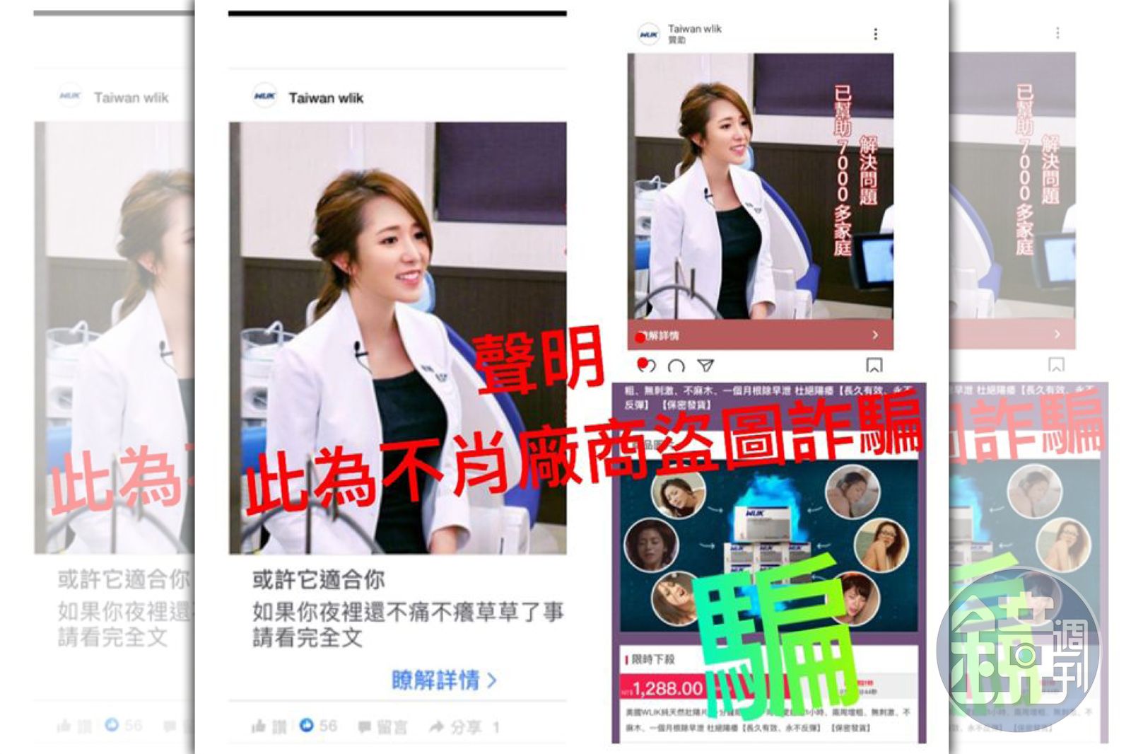雪碧也被不肖廠商移花接木修圖為壯陽藥代言。(翻攝自網路)劉芷伊表示,該廣告帳號顯示為 壯陽藥品牌為「wlik萬力可」,廣告封面是一張她穿醫師袍的照片,從連結點進去後竟全都是18禁圖片,演員王中平夫妻的圖也被盜用,「我發現後隨即和網站上的客服email聯繫要求下架,並告知會採取法律行動,但對方置之不理,隔天有新聞報導後,不肖業者竟然還擷取媒體訪問之圖片,將我所說的話修改換成新的廣告。」
