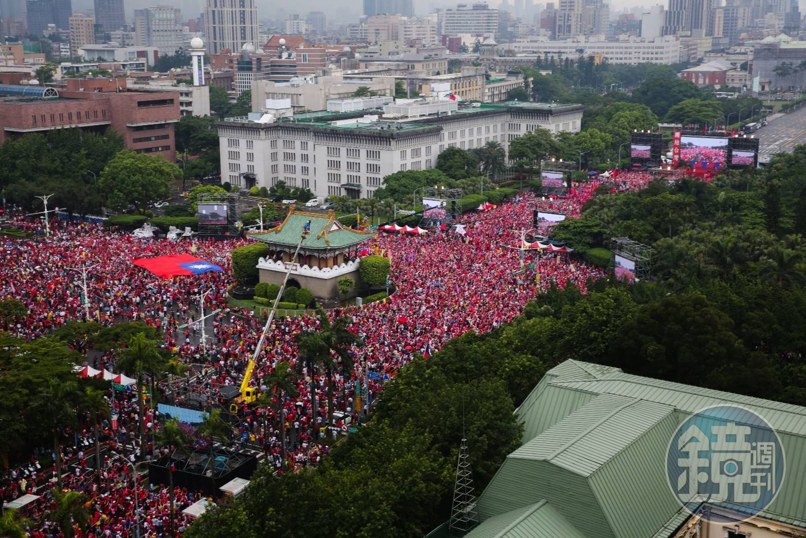 現場旗海飄揚,儘管午後大雨傾盆,仍澆不熄支持者熱情,主辦單位於下午1點半在舞台上宣布集會人數已超過10萬人,雨勢在下午2點停歇之後,韓粉持續從各地湧入,擴散到仁愛路。下午2點半主辦單位更宣布集會人數已超過15萬人。