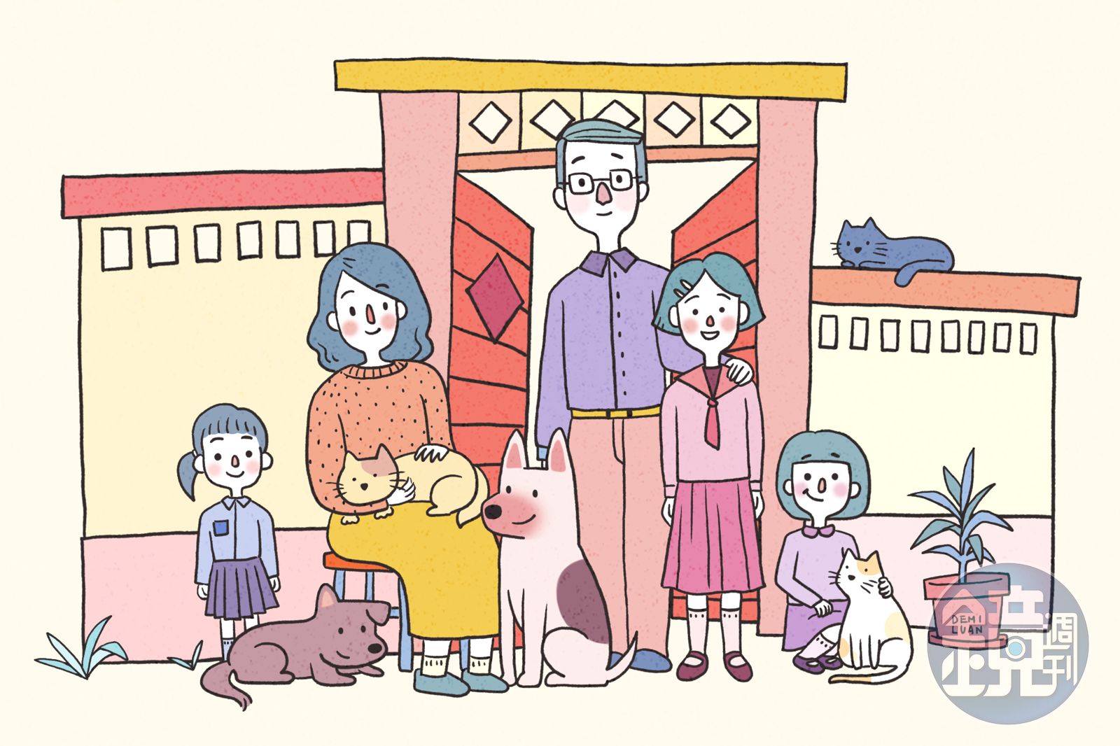 因此媽媽總是連買個菜也可以帶隻市場裡討生活的小孤兒狗回家,爸爸也總有同事友人這隻那隻的小貓塞來(唉,還沒給貓絕育的年代,簡直不知該說是幸福還是悲慘?)那也別說我們姊妹仨了,更是理直氣壯不時放學路上拾隻小狗小貓回。