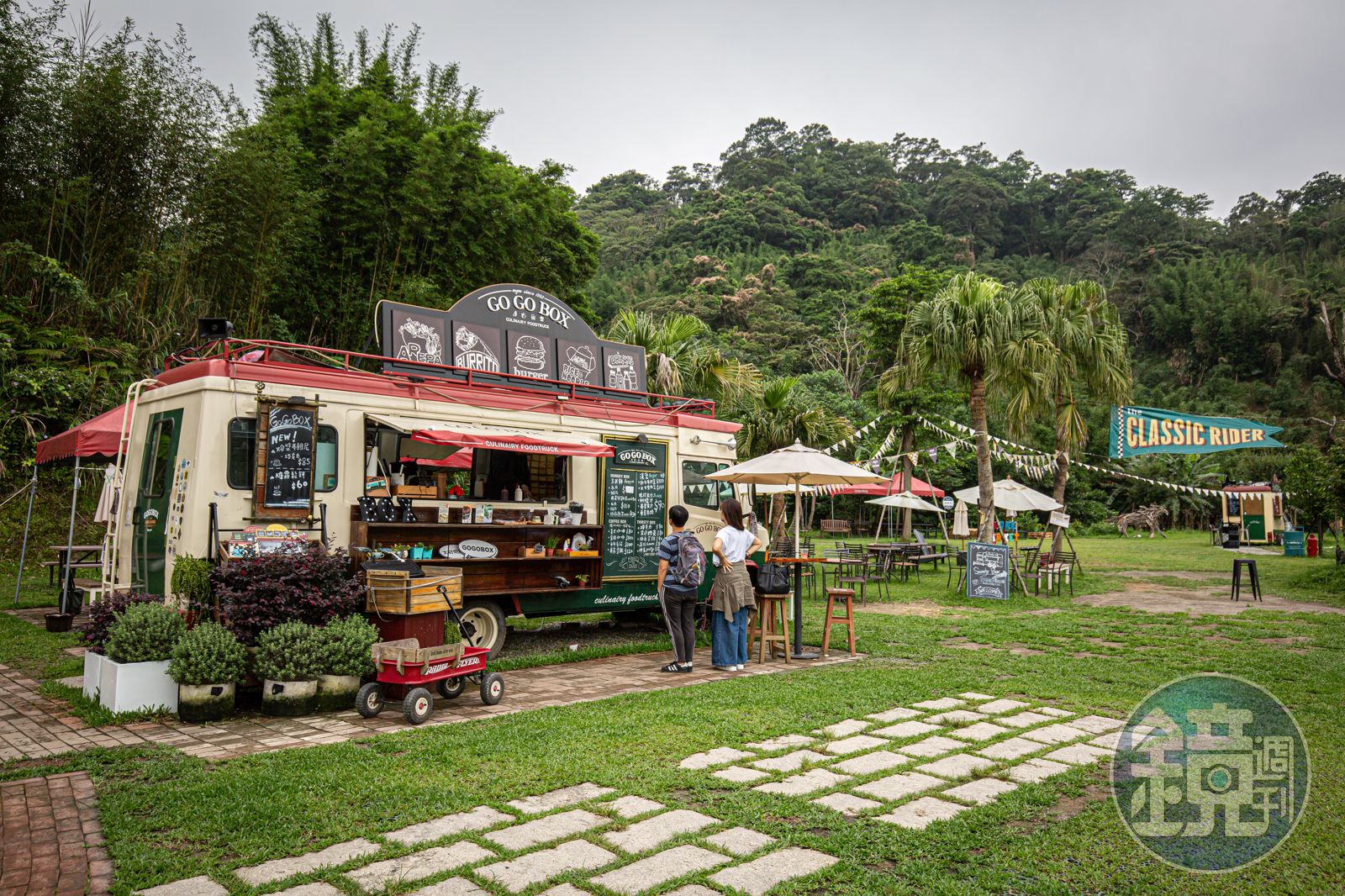 前往桃園三民蝙蝠洞的途中,一眼瞥見一個帶有鄉村氣息的小區域,這裡是「GoGo Box餐車誌in樂灣基地」,不但是IG的熱門打卡景點,也是假日時許多去北橫公路玩耍的重機騎士的途中休憩地,每到假日好不熱鬧。