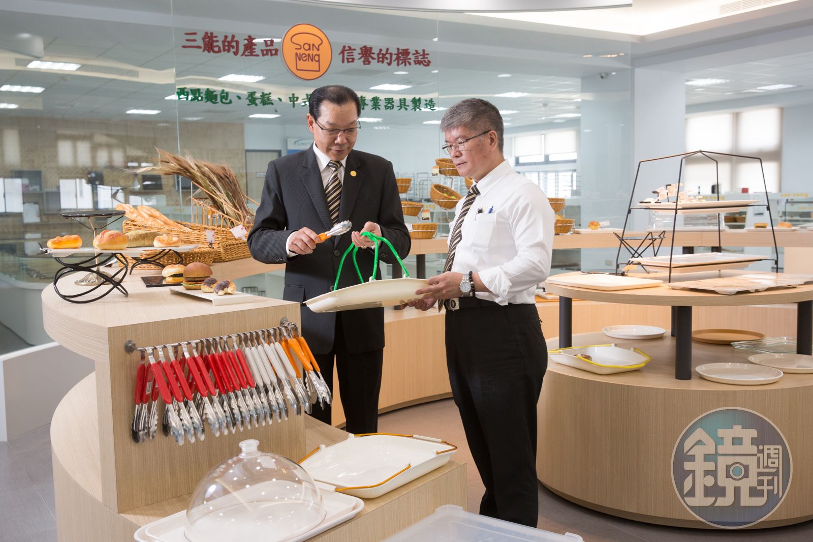 經銷商之一、有「烘焙界好市多」之稱的全國食材廣場副總經理葉威成說:「三能的東西耐用,烤盤使用次數都500次起跳。」另一個強項還有完善的售後服務,「有些客戶烤蛋糕失敗,我們一看就是配方不對,但三能會把產品帶回去,問清楚配方試做一次,確認哪個環節有問題。」這些優點讓三能產品使用率高達8成,10家烘焙坊有8家使用他們的產品,包括吳寶春、85度C、統一麵包、義美食品等都是客戶,幾年光景,站穩烘焙器具界一哥位置。