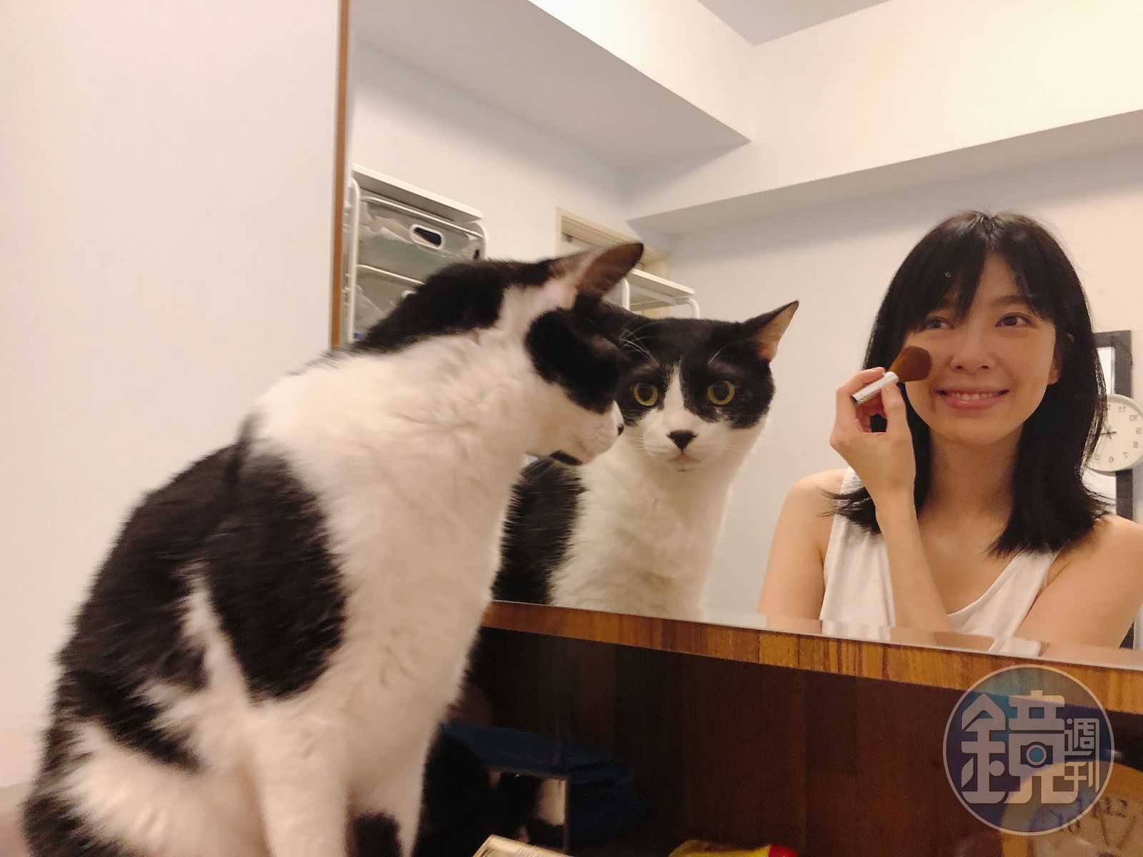 目前家裡養了3隻貓的路嘉欣,無論是擦保養品或化妝,貓都會擠在桌上陪她,想到剛養賓士貓「紅豆詞」時,牠每晚都會自己坐在桌上照鏡子,嚇得路嘉欣趕緊Google,發現牠只是在追逐空氣中的灰塵,後來養進第二隻貓「紅大詞」之後,就變成兩隻貓一起照鏡子,讓路嘉欣哭笑不得。另外,路嘉欣還透露閒暇在家會「整理電線」和「掃廁所」,很在意自家電線整齊與否,若電線被碰亂了還會覺得很生氣,而廁所整潔更是注重,連出外住飯店,進門第一件事情便是先刷廁所,笑承認自己應該是有輕微「強迫症」。