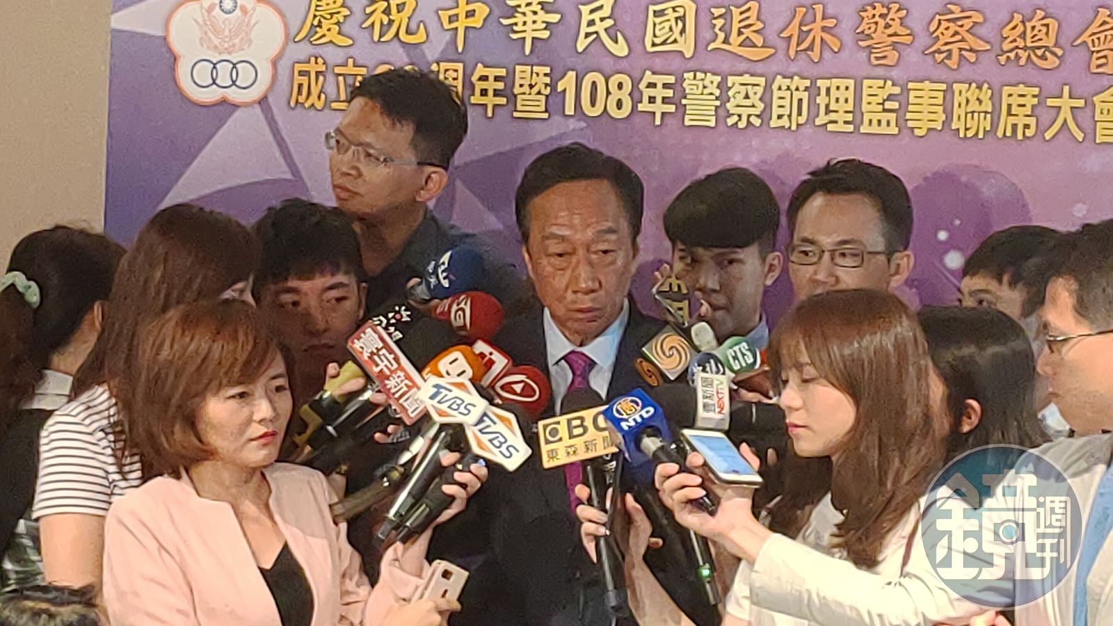 郭台銘12日上午出席在新北市板橋區舉行的「退警總會」活動,他在接受媒體訪時,被問到香港反送中遊行爆發衝突怎麻看時,郭台銘立即說「我猜到會被問到這題」,隨後,他拿出手機唸出3點事前已寫好的聲明稿。