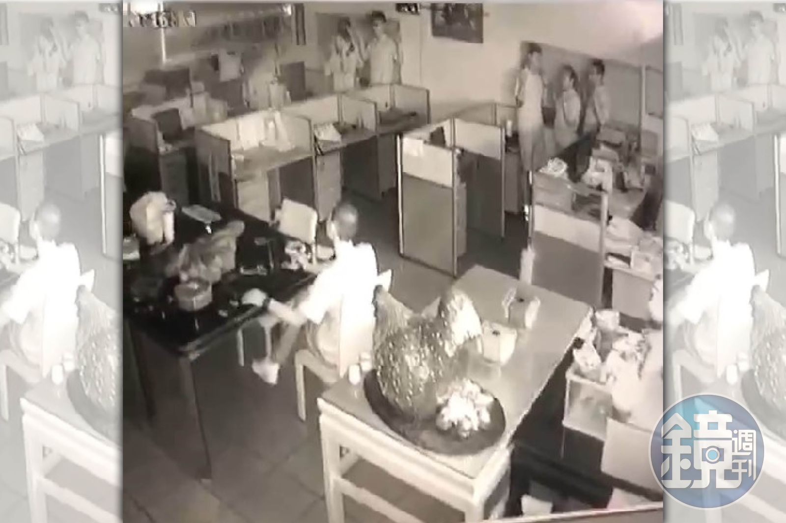 2名嫌犯分持長短槍前往二手車行,同時挾持了車行9名員工。(翻攝畫面)發布時間:2019.06.12 23:35 臺北時間