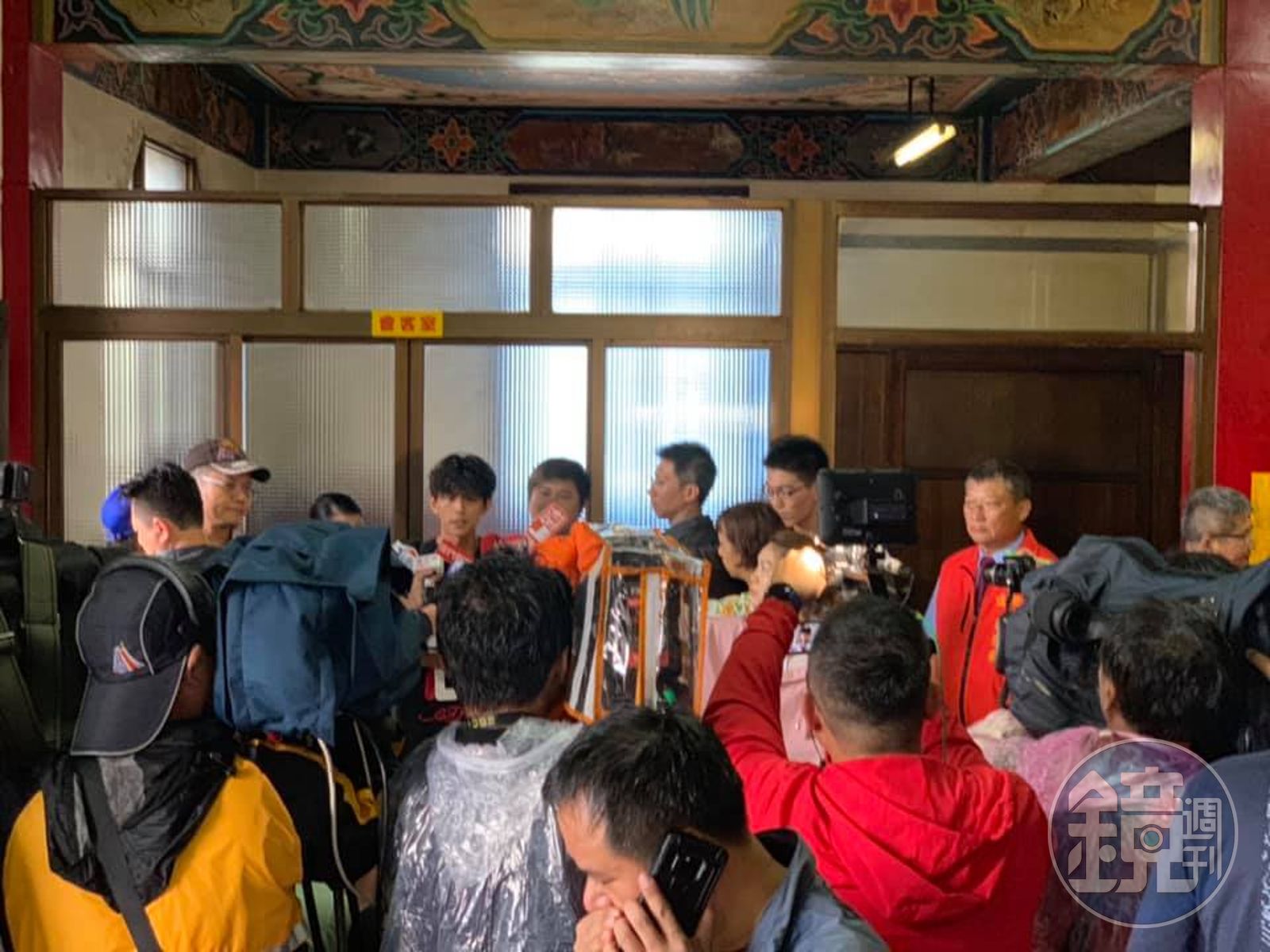 阿翔激吻謝忻的消息曝光,建興宮一早就熱鬧滾滾,大批媒體出動守候。(翻攝自台中烏日建興宮開漳聖王臉書)阿翔激吻謝忻的消息曝光,建興宮一早就熱鬧滾滾,大批媒體出動守候。(翻攝自台中烏日建興宮開漳聖王臉書)烏日建興宮管委會主委張登來受訪時表示,廟方4月就公告《綜藝大集合》6月12日要來錄影,大家都很期待,沒料到正好碰到兩位主持人的地下情曝光,而有此盛況,也是始料未及。隨後烏日建興宮也在臉書貼文,感謝節目的主持人、藝人與工作人員,更表示「今日錄影有些插曲,本宮也祈禱事件圓滿落幕」。