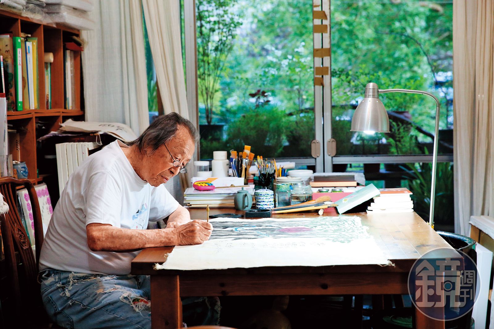 他追求一種清爽的生活,其實蠻想出家的,偏偏又結了婚。他的畫與詩的童趣放浪又不同,明朝散髮弄扁舟,有禪意,問畫畫跟寫詩追求不同的境界嗎?「我畫的就是心裡想的。我要畫的東西雖然筆不是筆,墨不是墨,但一定要跟別人不一樣。」「您曾說寫詩消愁,演戲忘憂,畫畫洩憤,你還恨這個世界嗎?」