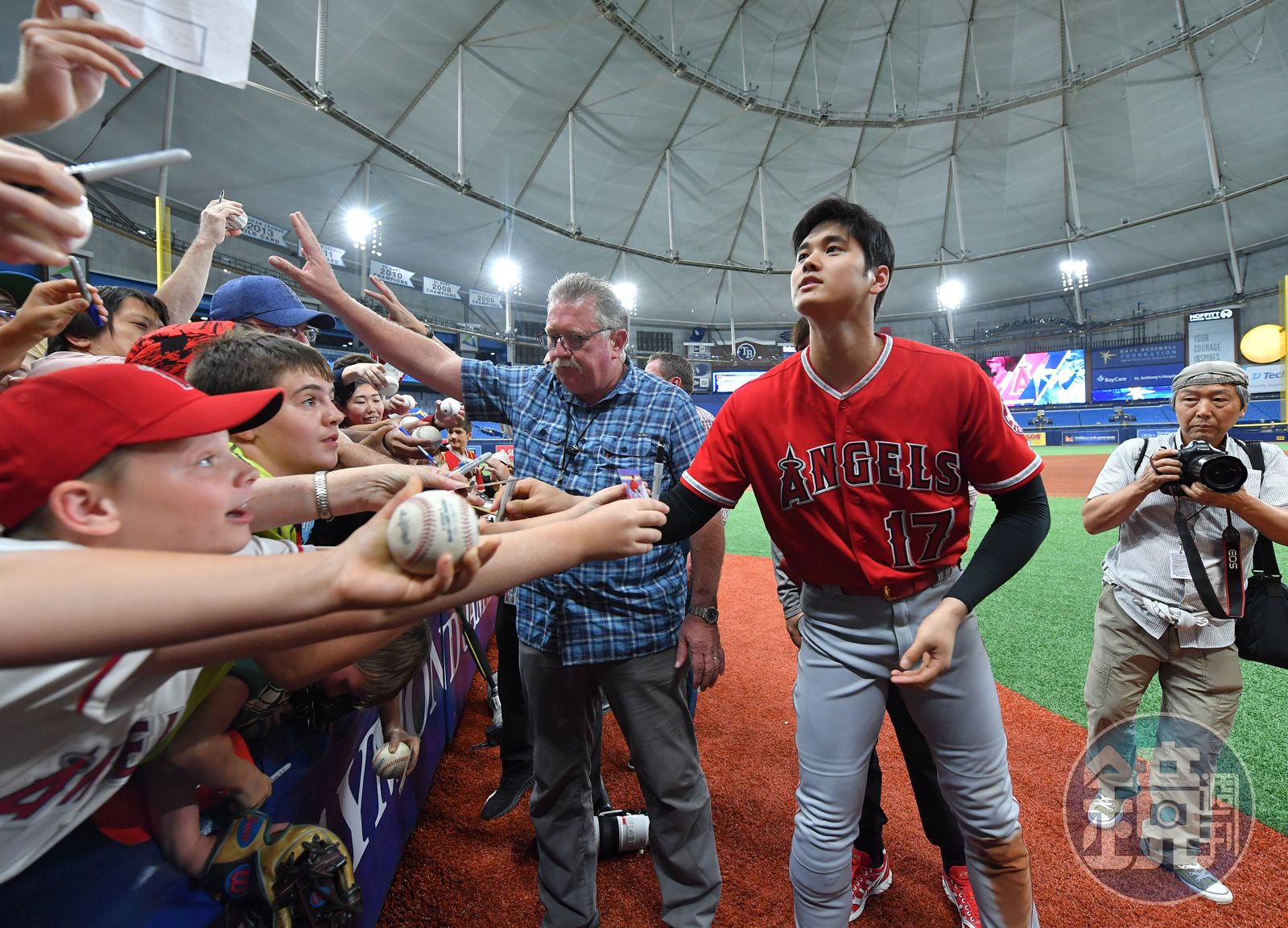 去年球季大谷投打並進拿下美聯新人王,打擊上,326個打數繳出打擊三圍.285/.361/.564、22支全壘打的好成績。若非打數不夠,他的長打率.564在美聯可以排到第4名,僅次於年度MVP等級的3名最強打者Mookie Betts、J.D. Martinez、Mike Trout, OPS .925則可以排到第6名,也只輸給上述3人外加Jose Ramirez、Alex Bregman。