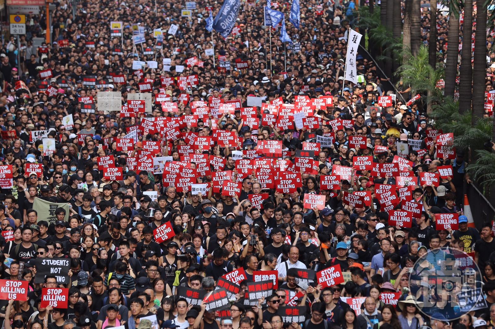 香港特首林鄭月娥昨(15日)宣布暫緩修訂《逃犯條例》修訂,但港人今(16日)身穿黑衣、戴上白絲帶繼續上街遊行怒吼要求,林鄭月娥下台。昨(15日)香港發生抗議《逃犯條例》修訂男子墜樓不治悲劇,大批市民前往太古廣場獻花哀悼,也刺激上街民眾參與遊行,大數據預估人數可破144萬人。晚間11點民陣宣布,今日遊行人數估計有近200萬人,創香港示威人數紀錄。