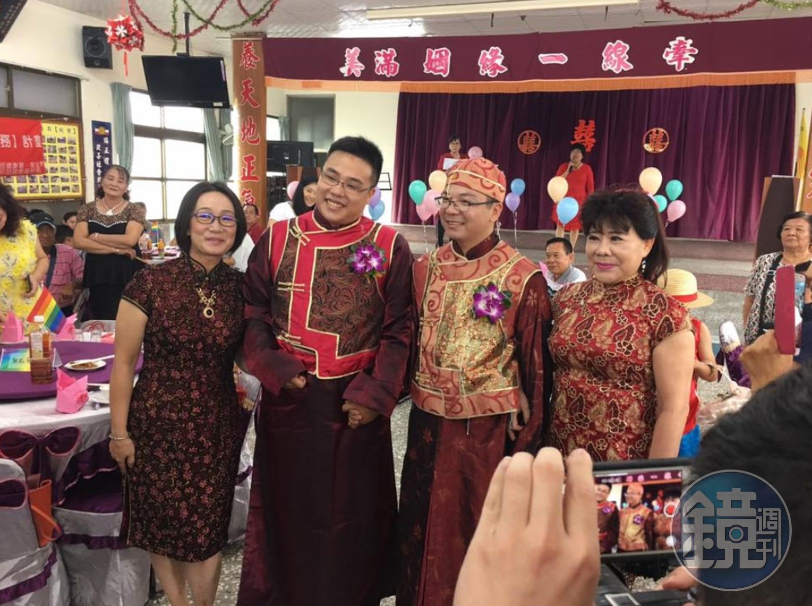 高雄市議員高閔琳昨(16日)晚間臉書發文,分享她在高雄梓官參加的第一場同志婚宴,更是她人生第一次為同志朋友證婚,新人分別為37歲的宗廷和30歲的耿弘。