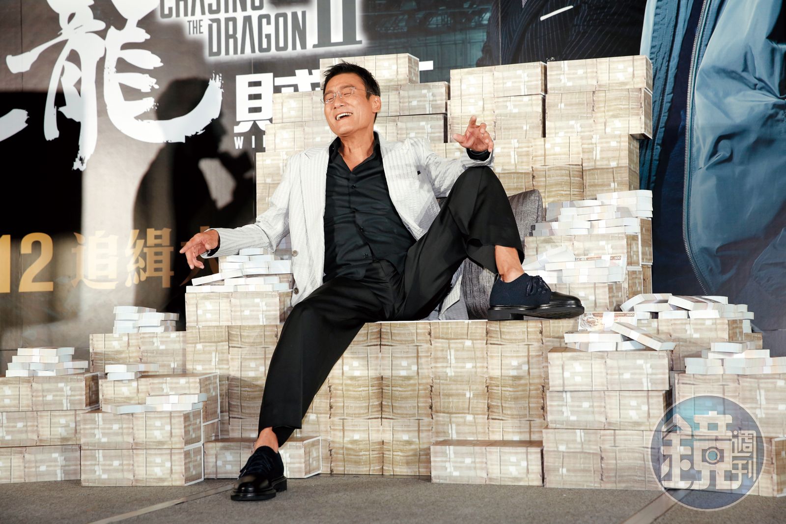 當年本土劇資深男優雷洪有「爆橘拳」,梁家輝來台灣宣傳電影《追龍II:賊王》時變本加厲,爆起榴槤來了~而且他配合「賊王」霸氣,拍照時雙腳張得超開,感覺胯下藏有龐然巨物,褲子那些褶縫實在令人目不轉睛吶!