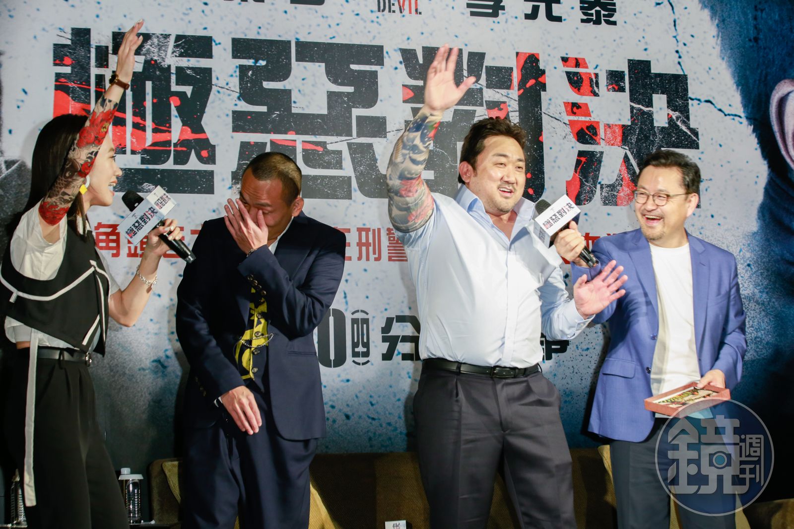 電影公司特地請來玖壹壹春風來當記者會嘉賓,以一襲西裝現身的春風不見平日霸氣,面露羞赧表示他很欣賞馬東石,是他的粉絲。春風還教兩位說台語,馬東石與導演即興演出「林北是角頭」和「歹路不通走」笑翻全場。後來學了「我們都是好兄弟」時,主持人Lulu邀三人合唱「因為你是我的兄弟」,馬東石摟著導演與春風邊唱邊搖,超級和樂融融。《極惡對決》明天在將西門紅樓廣場舉行電影首映會,導演李元太與馬東石將與民眾近距離接觸,電影將於6月20日正式上映。