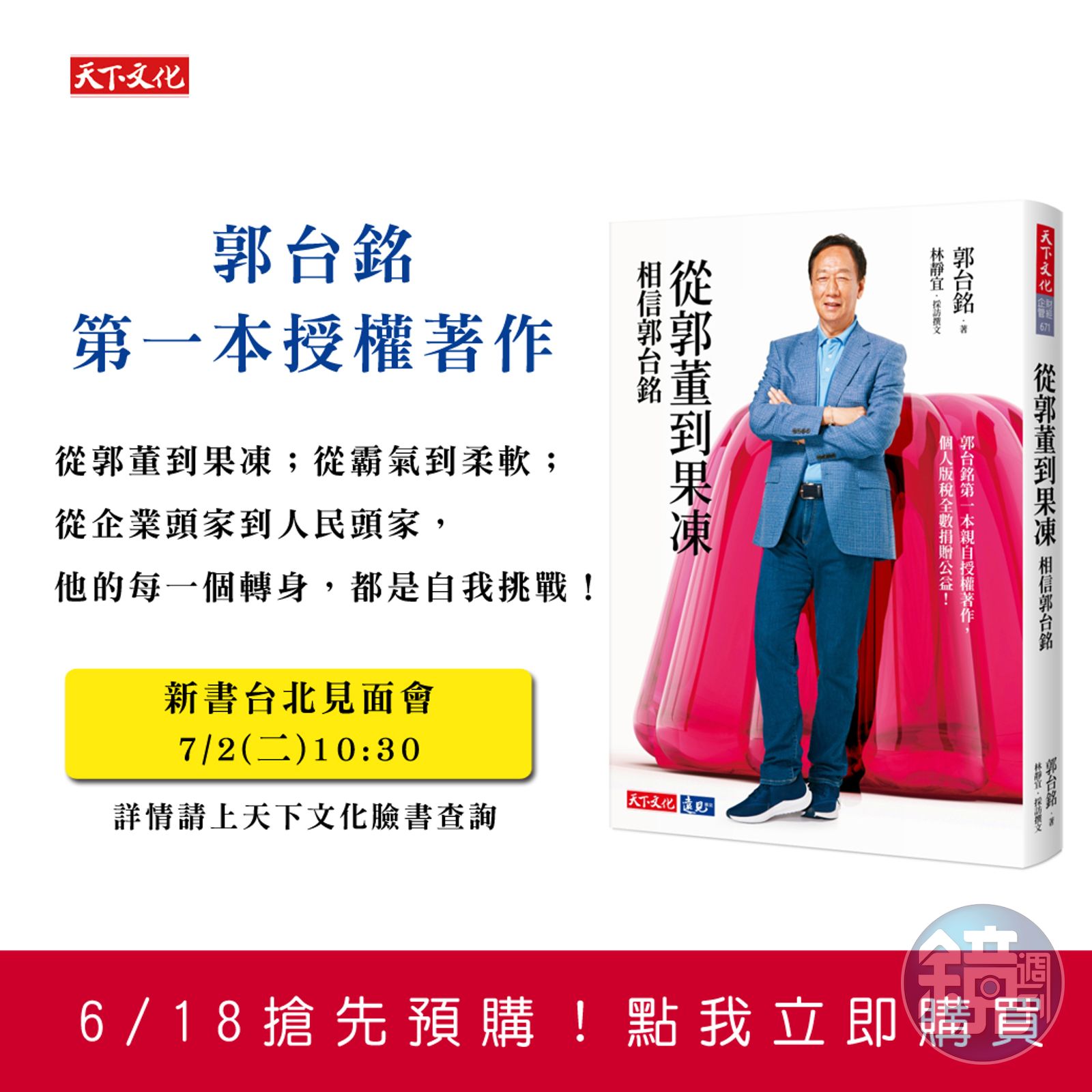 《從郭董到果凍:相信郭台銘》是郭台銘第一本親自授權的著作,書中提及,「人生的對手是自己」是郭台銘創業45年的人生心得,白手起家的他,沒有高學歷,一路做中學,從失敗中積累經驗與智慧,成為台灣首富,為了台灣下個世代的未來,他再度挑戰自己,走一條充滿荊棘、人煙稀少的路。身經百戰、享譽國際的他,首次授權採訪,談及台灣青年如何打敗22K低薪魔咒,成為斜槓、跨界人才,成為不被AI取代的快樂工作者,並且將小事做成大事,在世界的舞台發光。