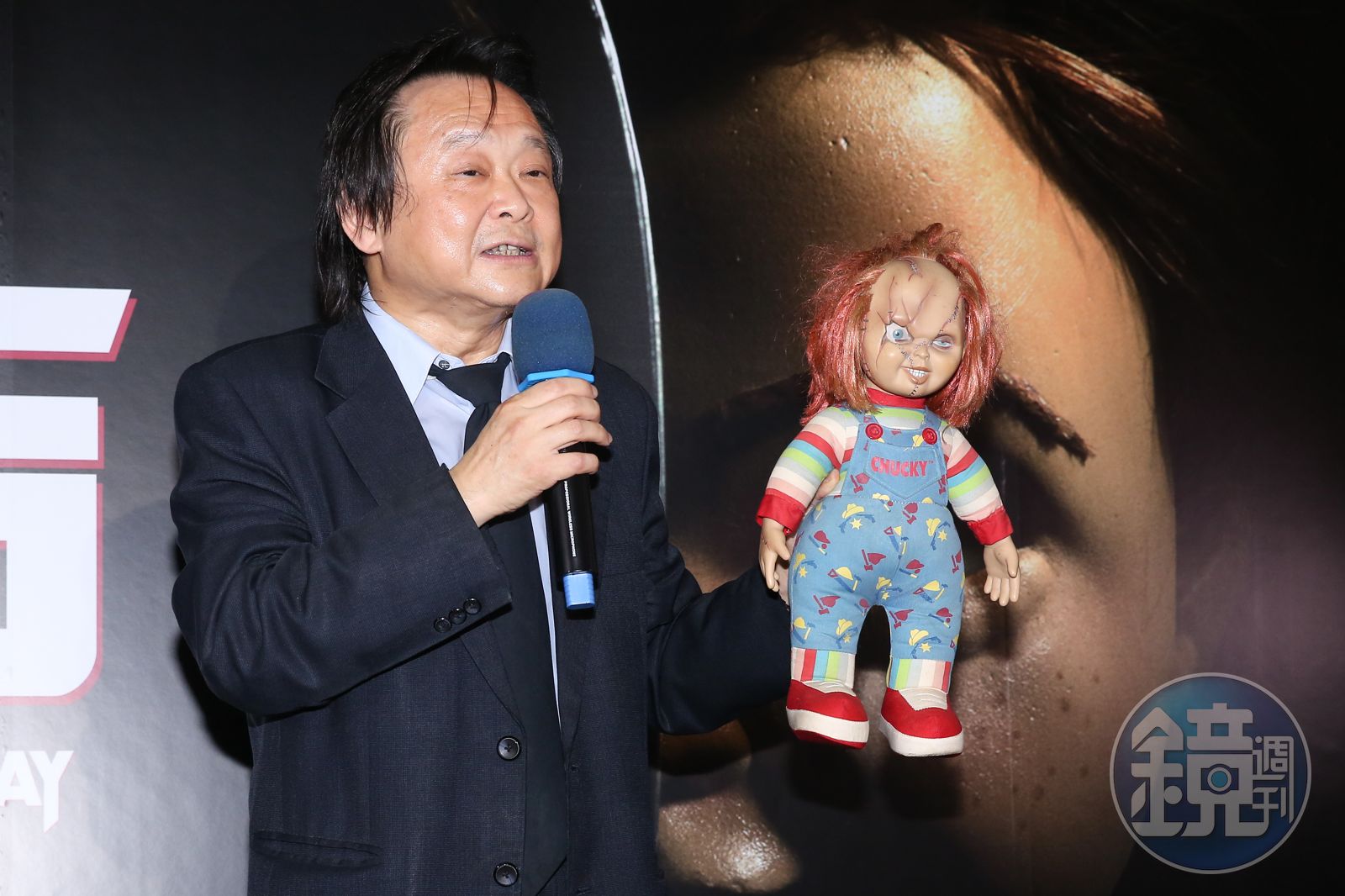 但這天參加首映會活動的,除了影迷外,還有電影動漫迷的Cosplay玩家,他們趁著媒體連訪時,不只在旁大喊王世堅的英文名句:「Over My Dead Body!」還準備了恰奇娃娃,讓王世堅拿著拍照。大小恰奇合照時,畫面相當荒謬,讓人忍不住想笑。