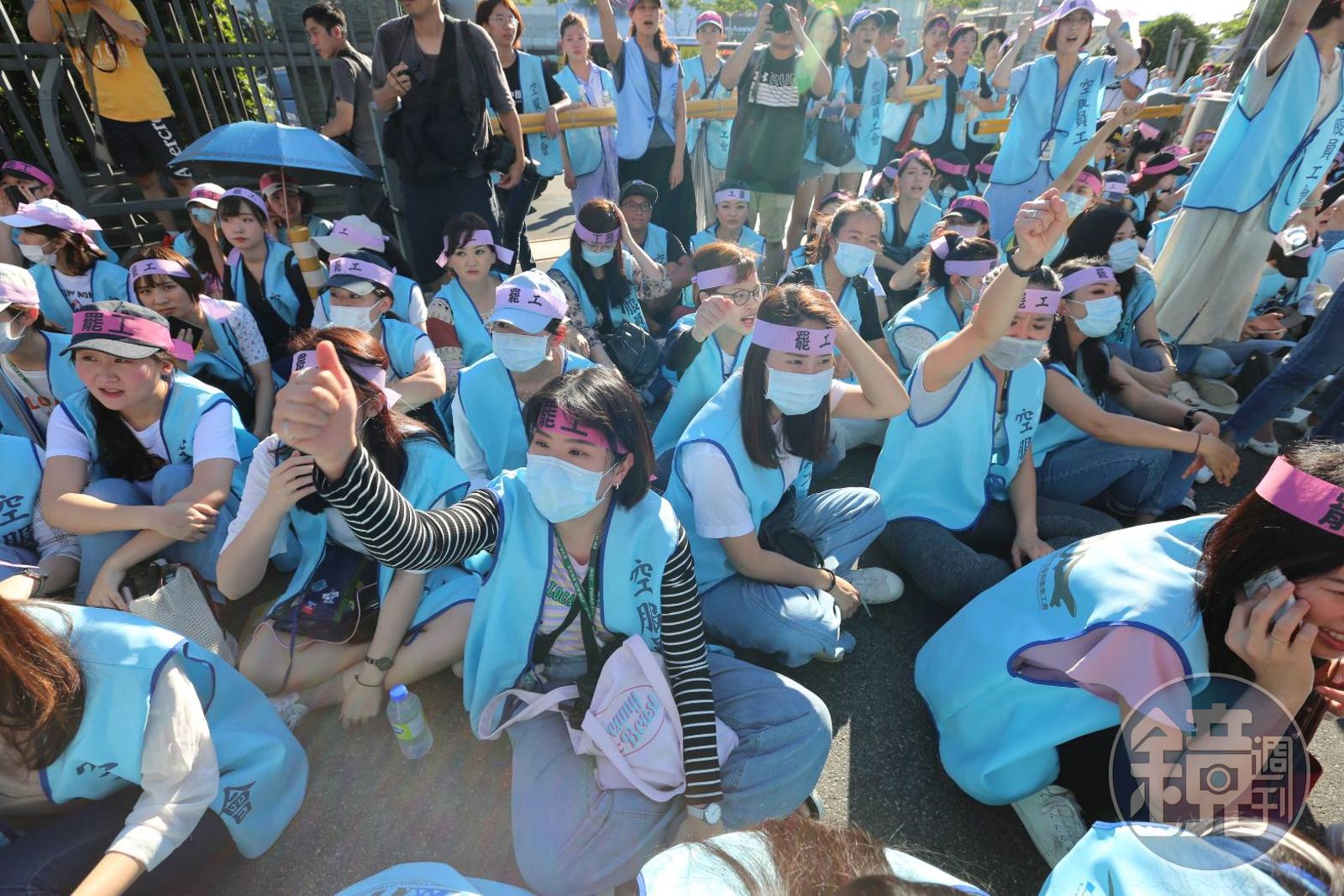 長榮航空公共關係室經理林司忠昨(24日)晚間偕同律師前往罷工現場,強調已經收集到40份空姐委託書,希望能代替空服員領回三寶,但被工會以需2個工作天為由拒絕。