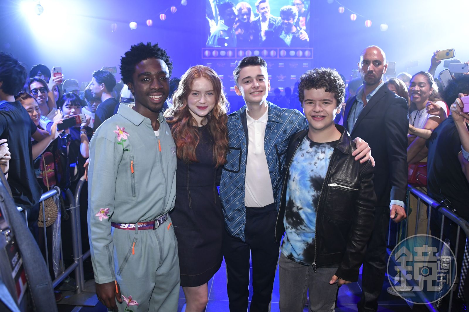 扮演威爾的諾亞施納普、飾演達斯汀的蓋登馬塔拉佐、飾演盧卡斯迦勒麥羅林,還有《怪奇物語2》才加入陣容、飾演麥克絲莎蒂辛克,4位演員一出現,大家都驚訝他們真的都長大了!相較於當初拍戲時還是小孩子、必須符合劇情做80年代的打扮,眼前的每個人都是活潑的青少年,個頭也好大。