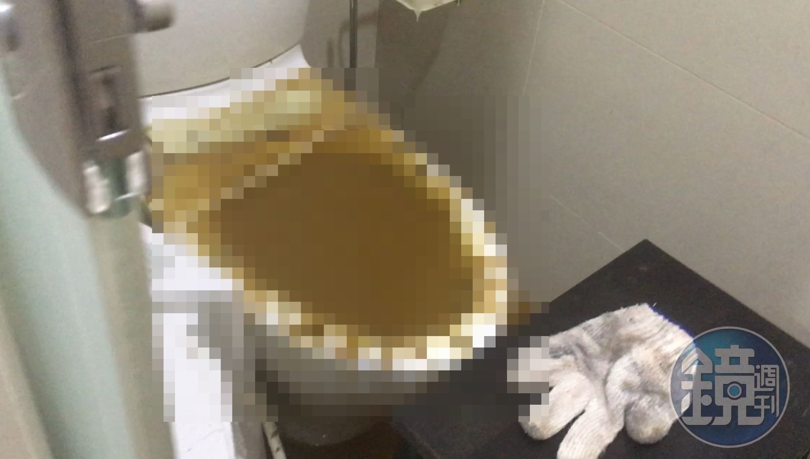 在處理告一段落後,已是9日凌晨零時許,小球說,由於是連假日他們想在外住旅館也都沒有房間,最後只好連夜奔赴淡水妻子娘家暫棲一晚,9日上午都發局委託的物承辦人則在早上7點多就打來電話說「要立刻幫我處理」,雙方約在9點見面後,他們找來專業的通馬桶公司,在開挖馬桶後,在管線下方發現竟是「貓砂、廚餘」塞住了。